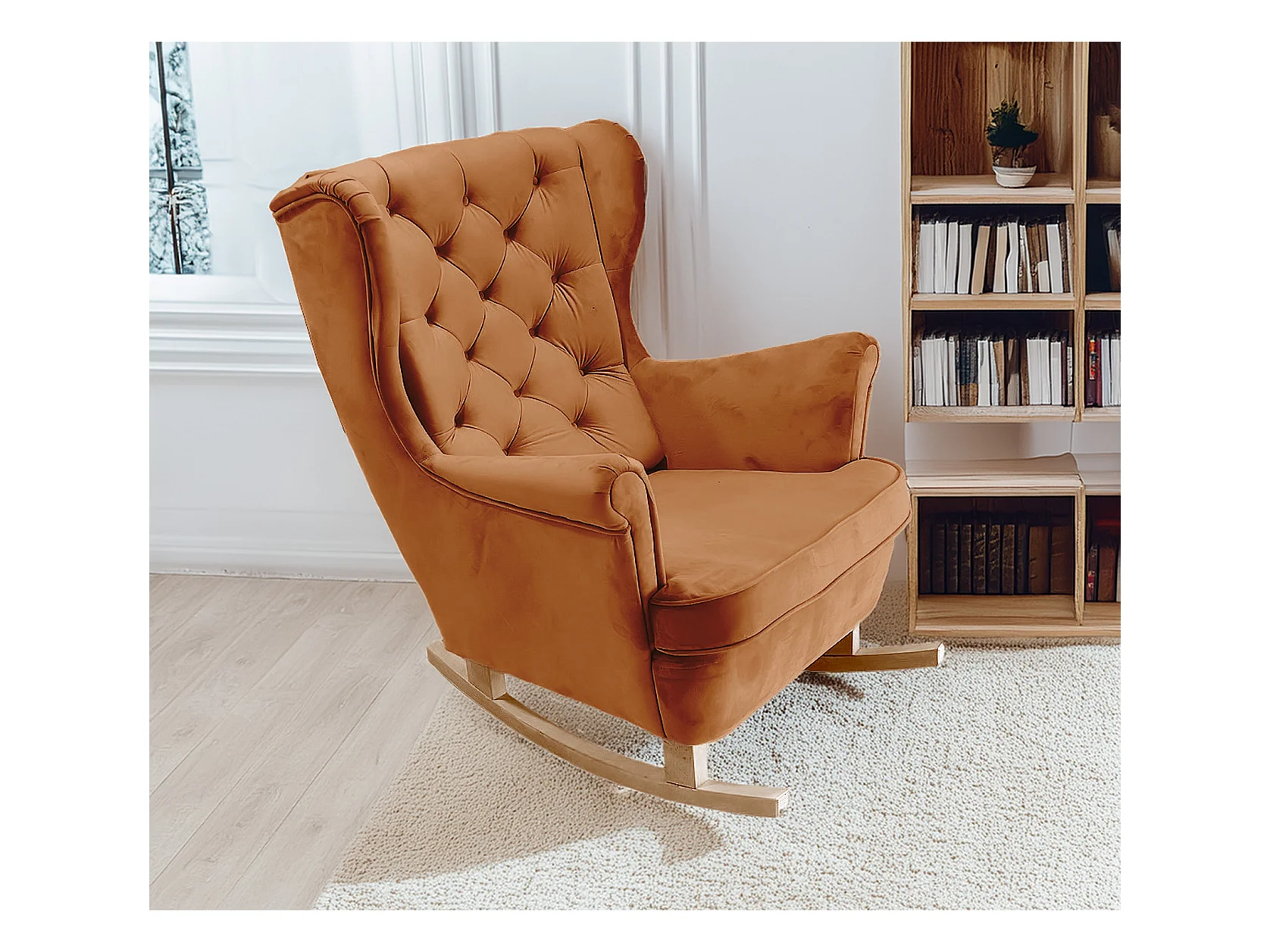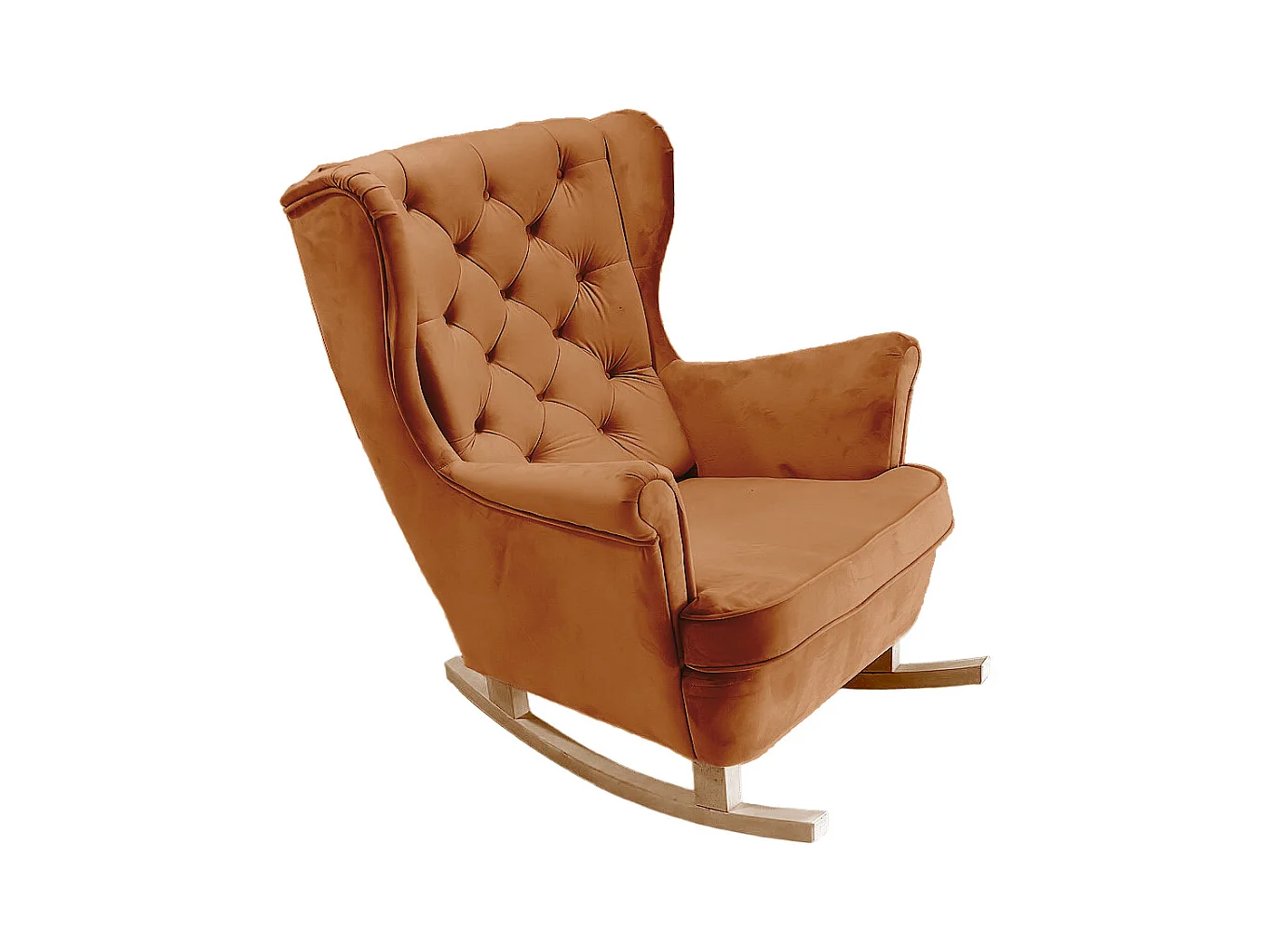 Fotel bujany MCW-K10, terakota, stelaż w kolorze orzecha włoskiego