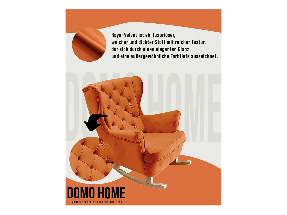 Fotel bujany Gallarate, wygląd dębu, tkanina/tekstylia pomarańczowy
