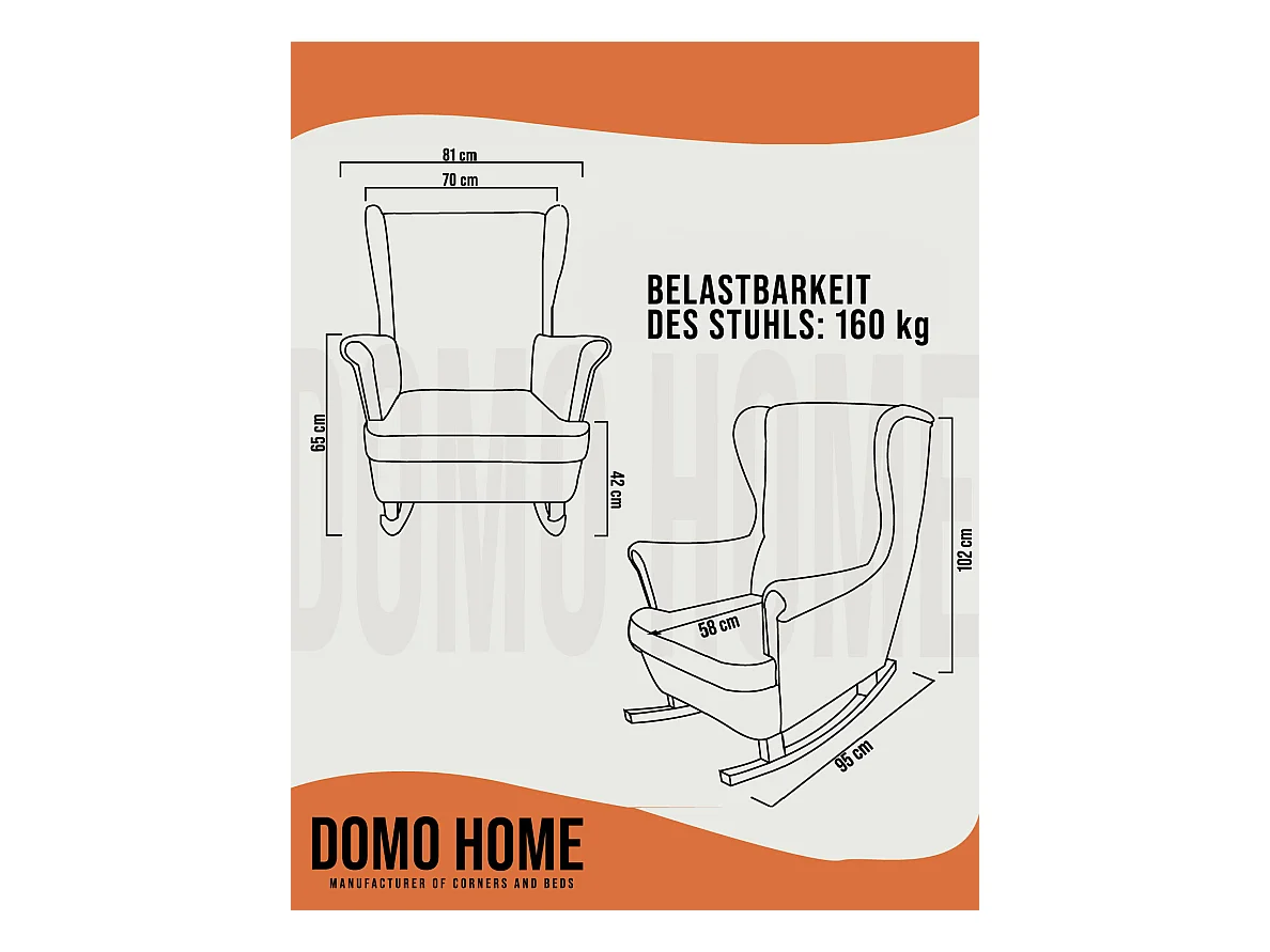 Nowoczesny fotel bujany, jasnoszary plusz, fotel bujany z podłokietnikami i oparciem, odpowiedni do salonu i sypialni