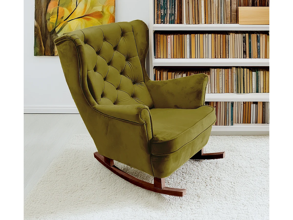 Fotel bujany Gallarate, wygląd dębu, tkanina/tekstylia zielony