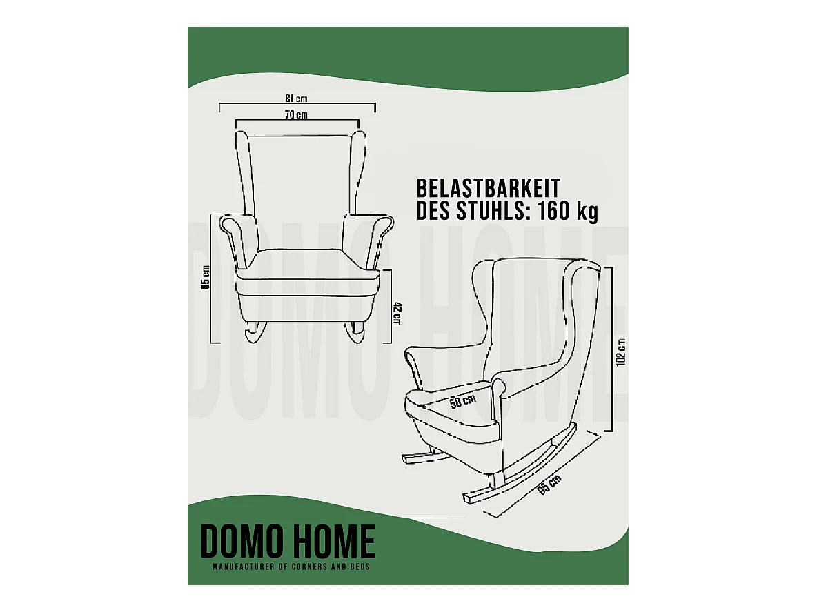 Fotel bujany Gallarate, wygląd dębu, tkanina/tekstylia zielony