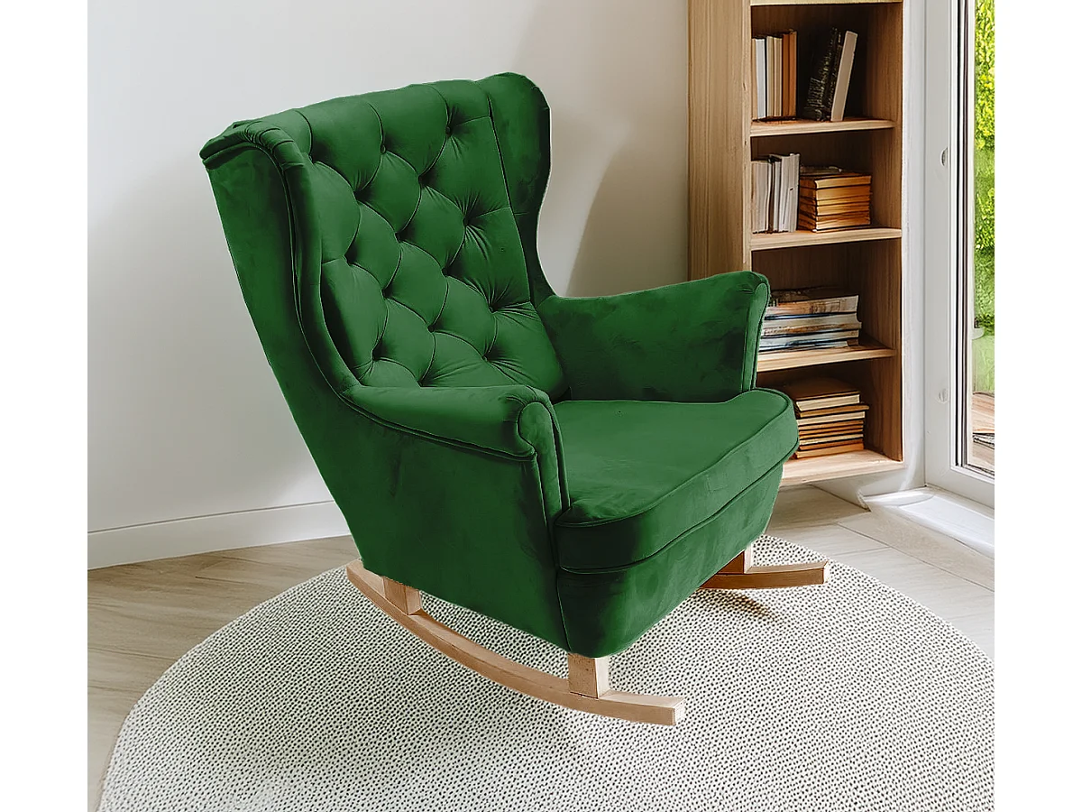Fotel bujany ELLAN Welur Ciemnozielony