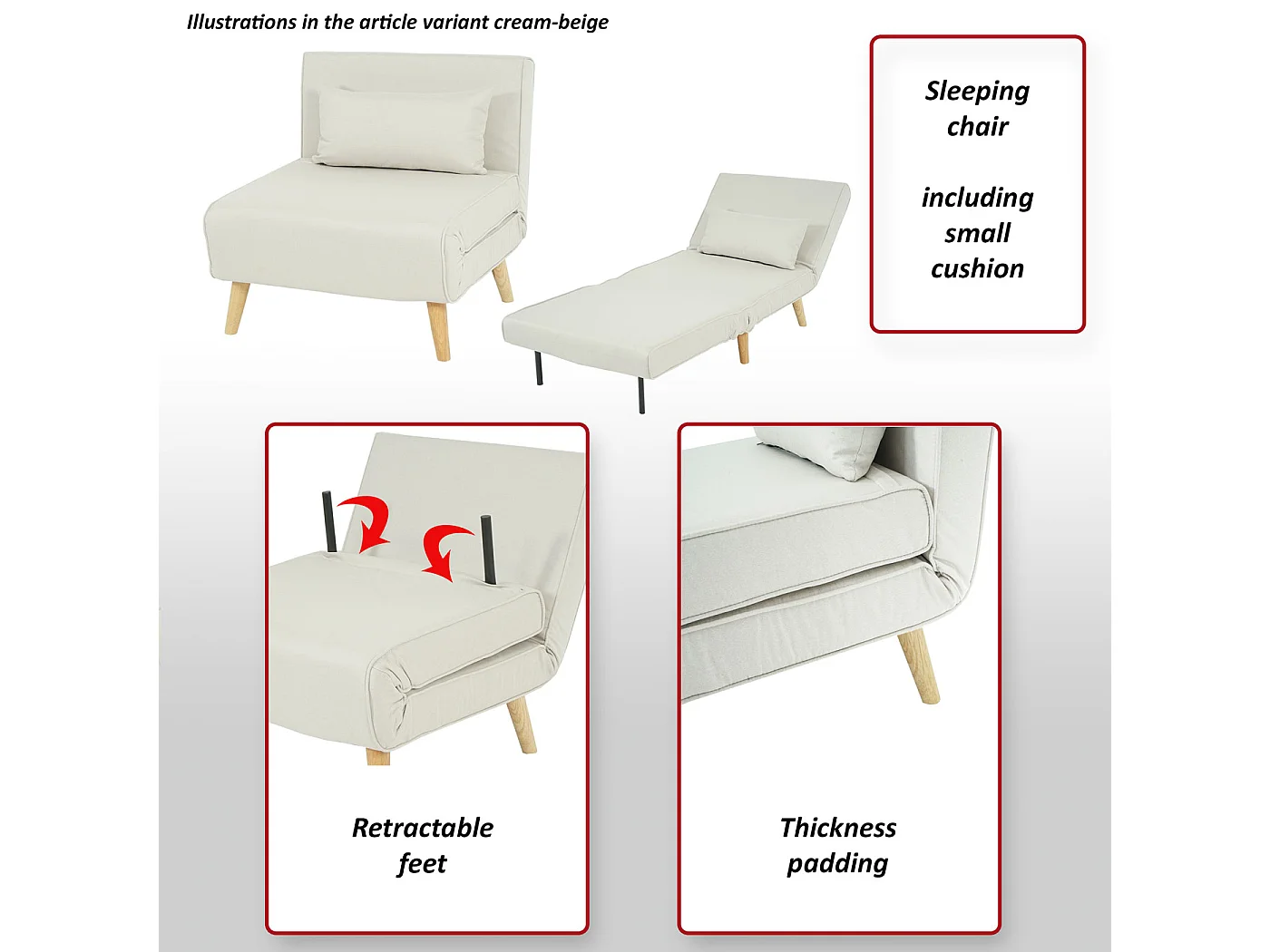 Fotel rozkładany MCW-D35, kremowo-beżowy