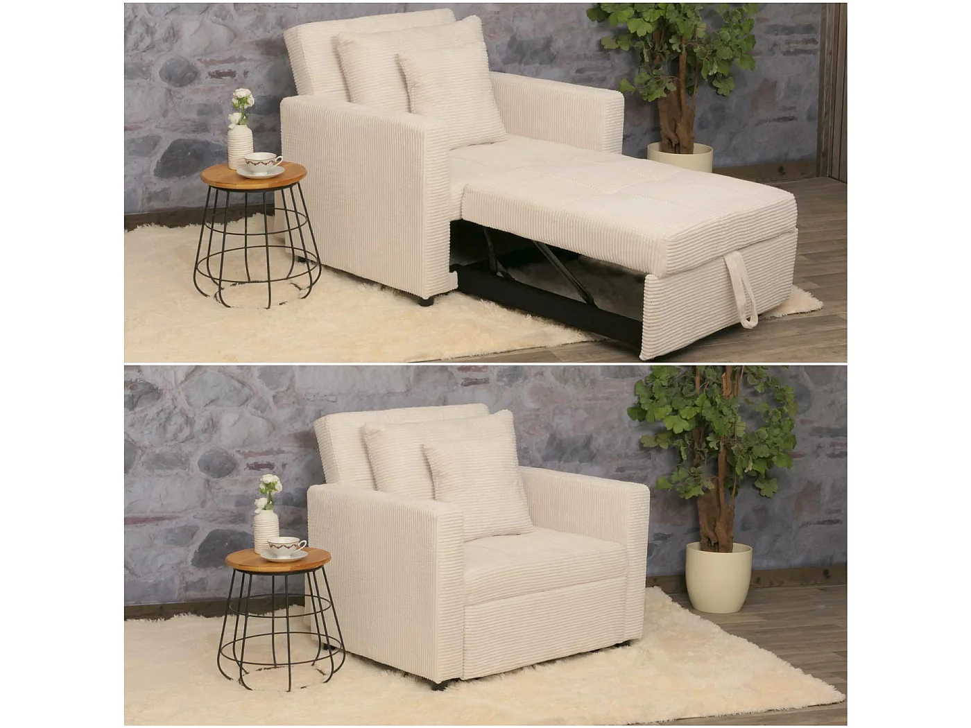 Fotel rozkładany MCW-L90, kremowo-biały