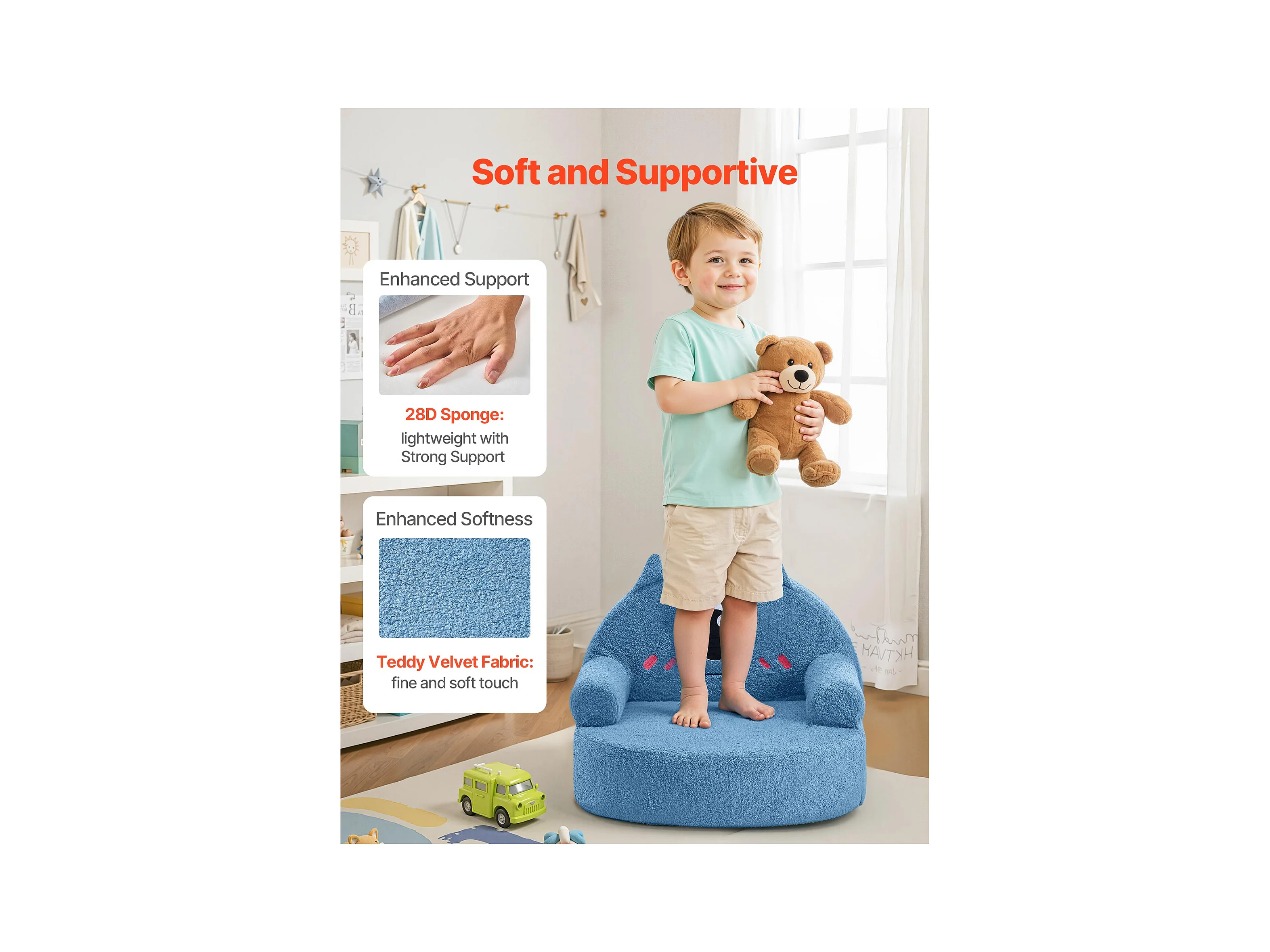 Fotel SucceBuy dla Dzieci Wygodny w Stylu Potwora, Dziecięce Krzesło z Pianki z Podłokietnikami, Sofa dla Maluchów Wyjmowana i Zmywalna, z Gąbki 28D