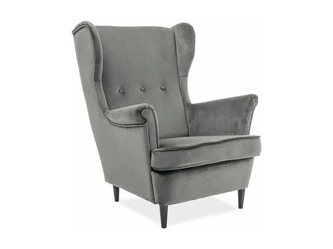 Stylowy fotel z uszakami, antracyt, 80 x 90 x 88 cm | Stelaż z drewna bukowego i płyty wiórowej, 100% poliester, miękka szara pianka | Wzornictwo przemysłowe