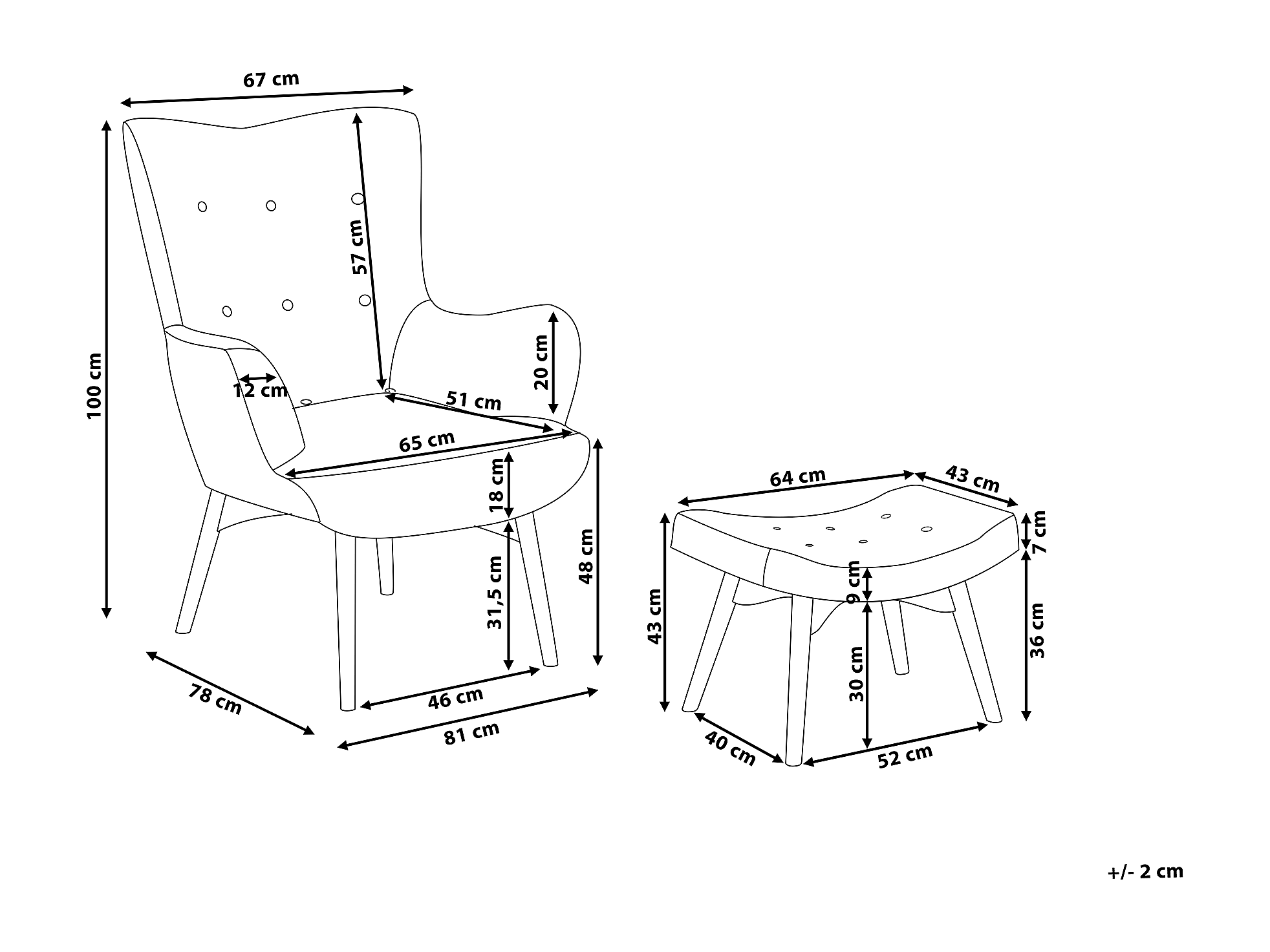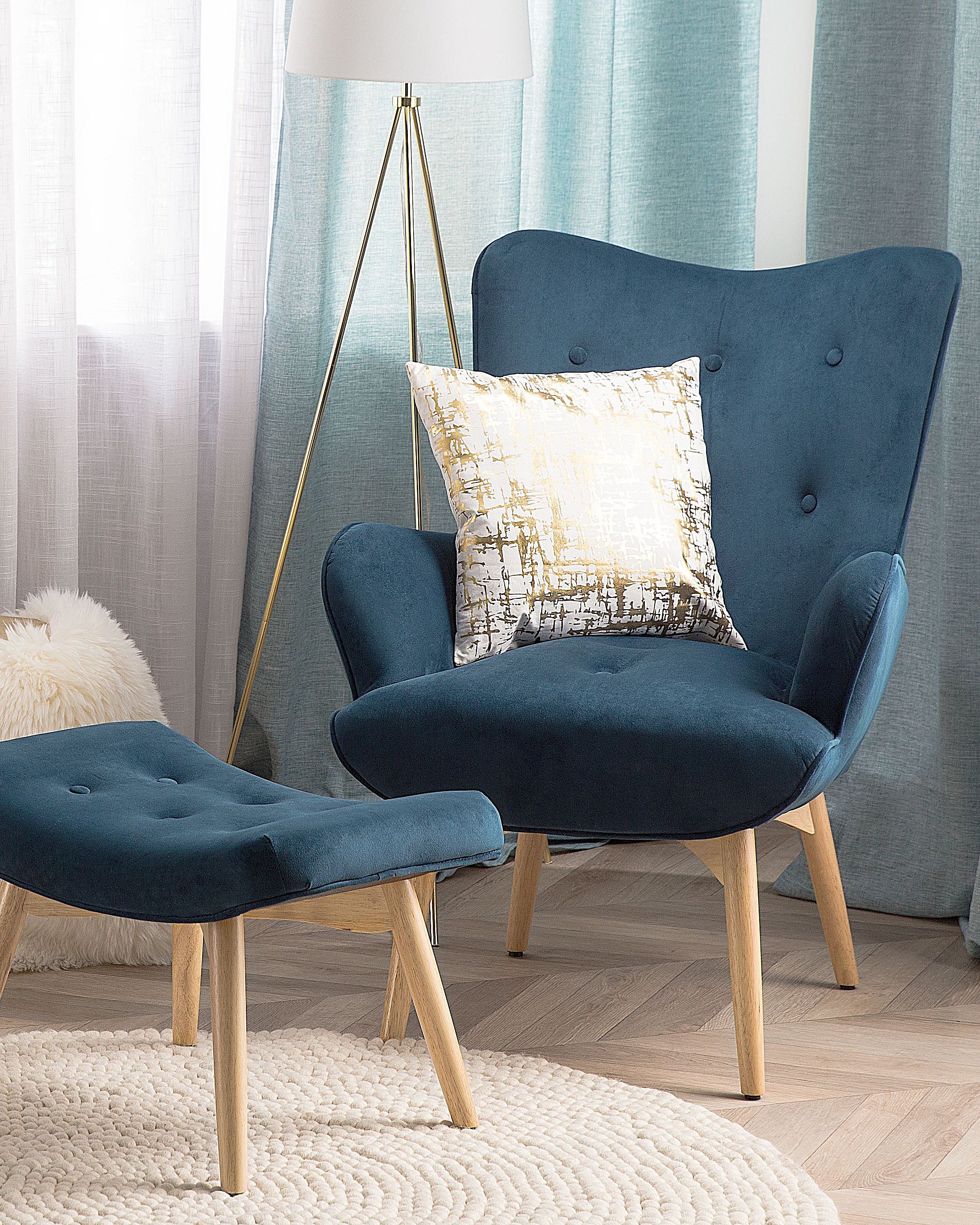 Fotel uszak VEJLE Z podnóżkiem Welur Ciemnoniebieski