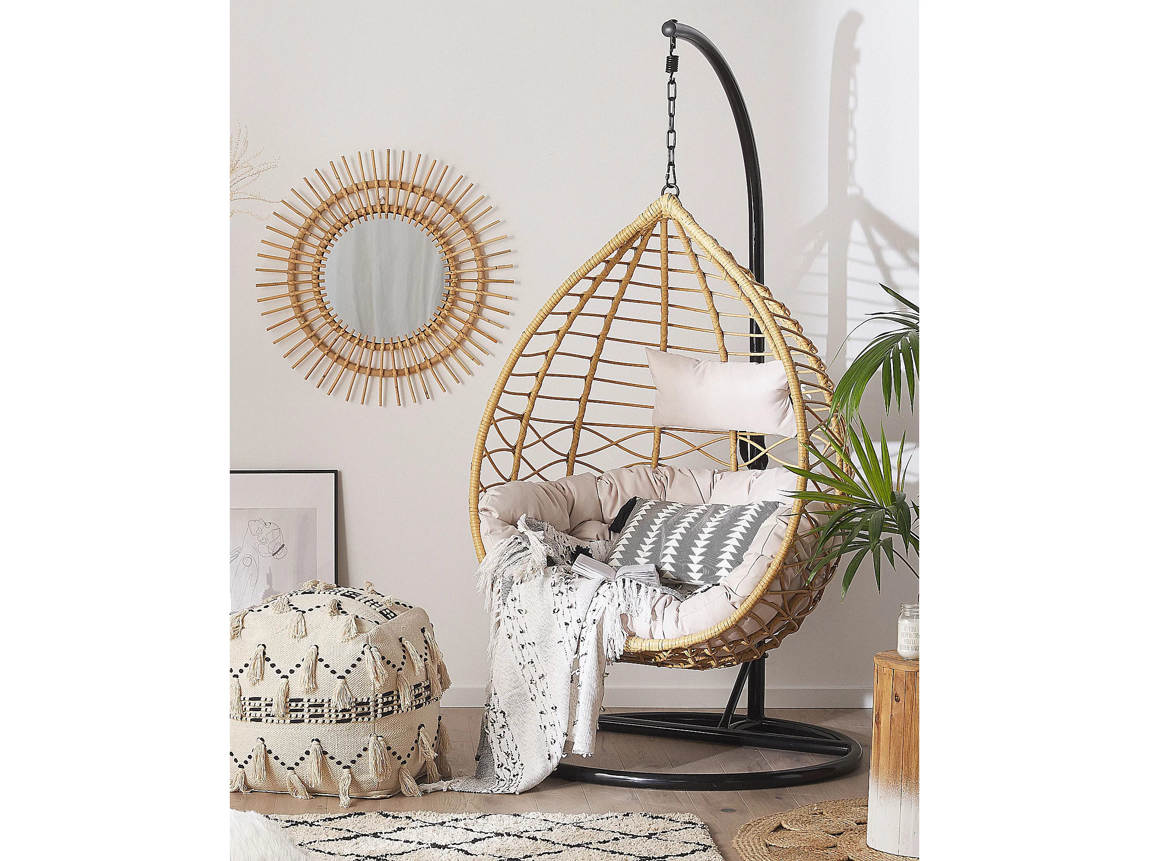 Fotel wiszący ze stojakiem ARSITA Technorattan Naturalny