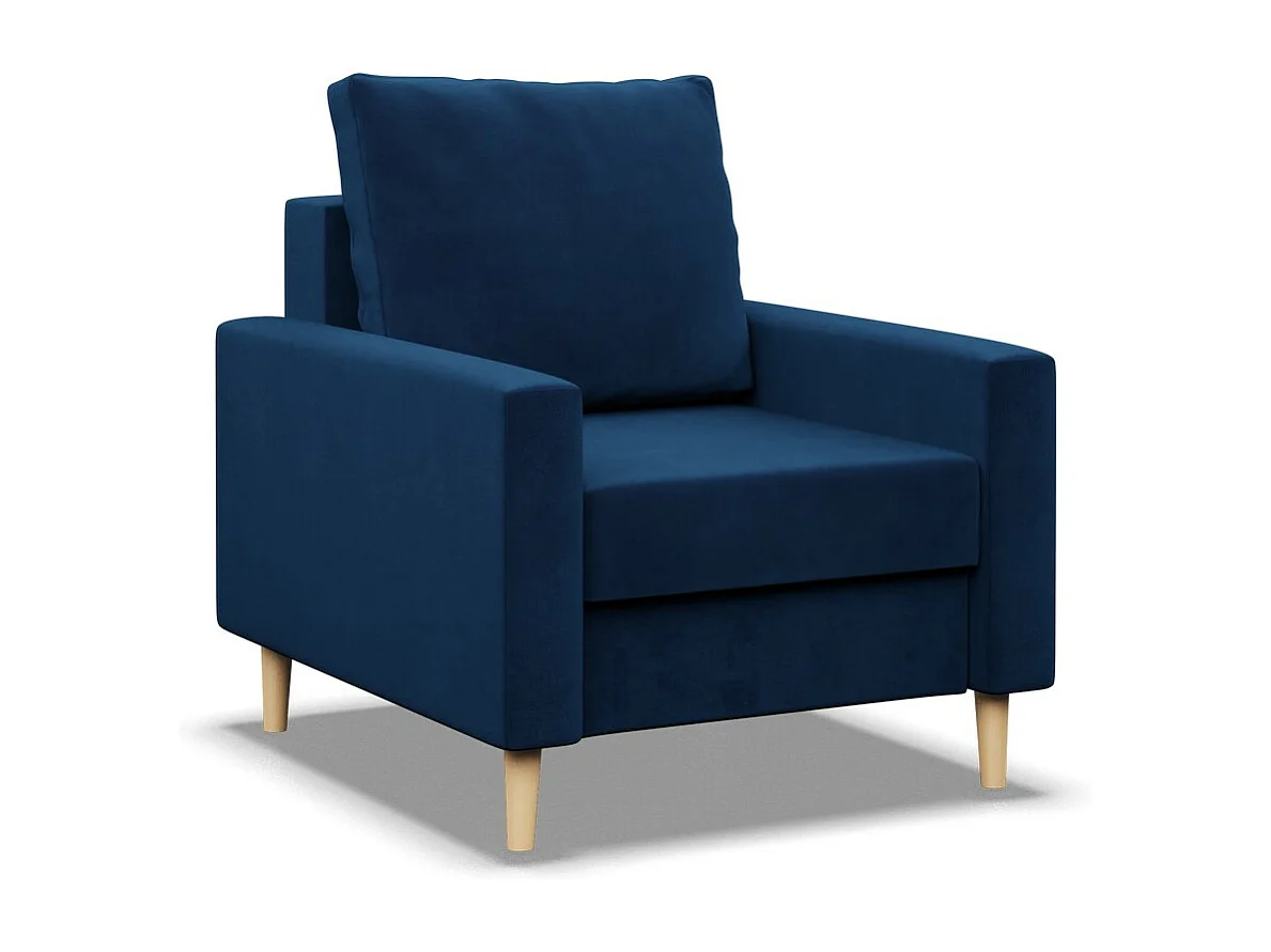Fotel wypoczynkowy do salonu, poduszka dwustronna, kolor niebieski