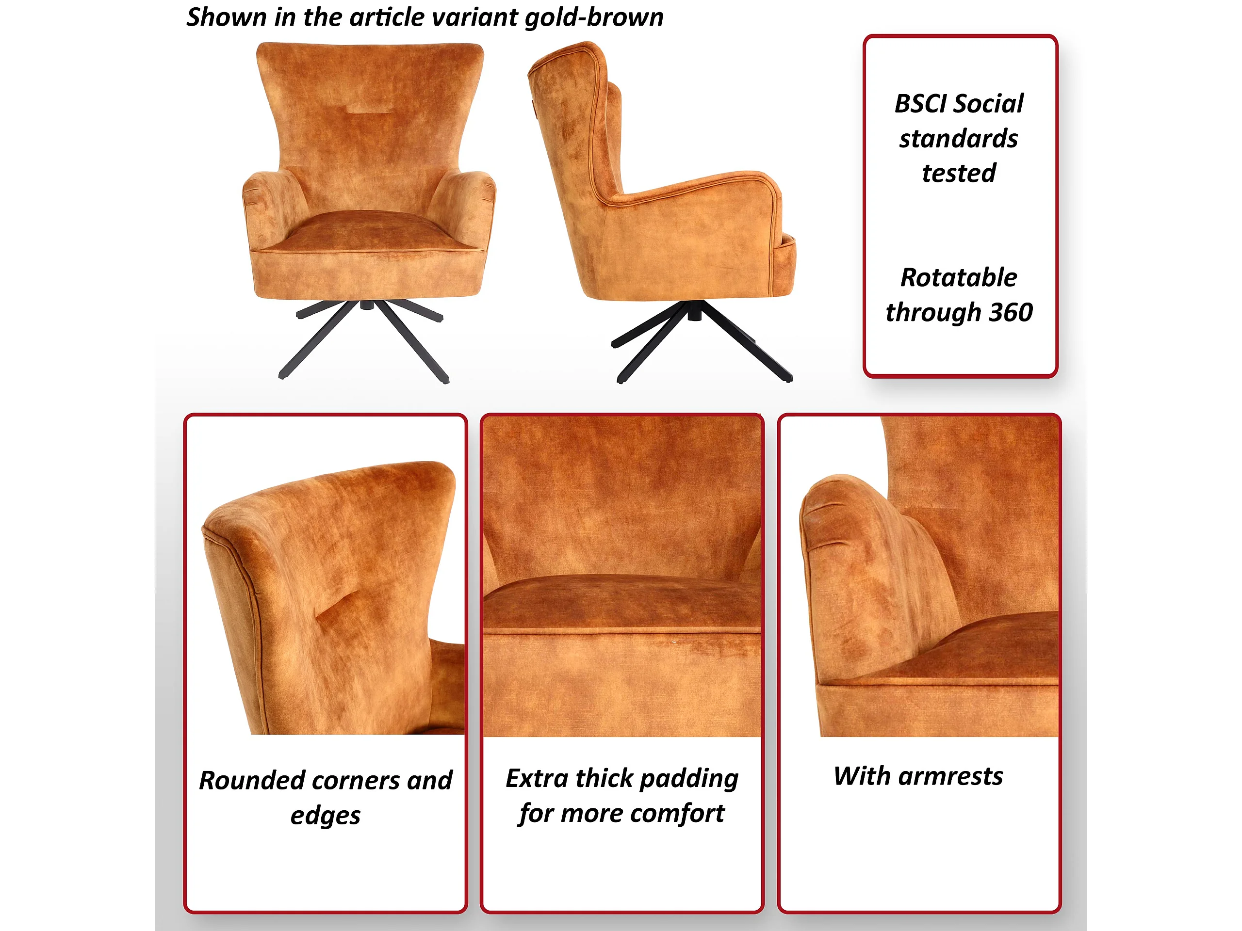 Fotel wypoczynkowy MCW-L63, złoto-brązowy