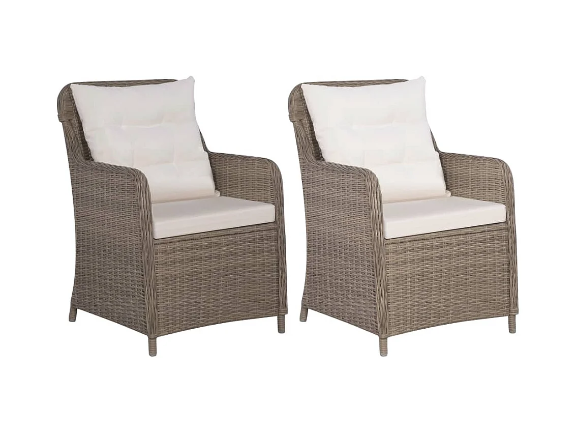 Fotele ogrodowe z brązowej plecionej żywicy, zestaw 2 szt. z wygodnymi poduszkami