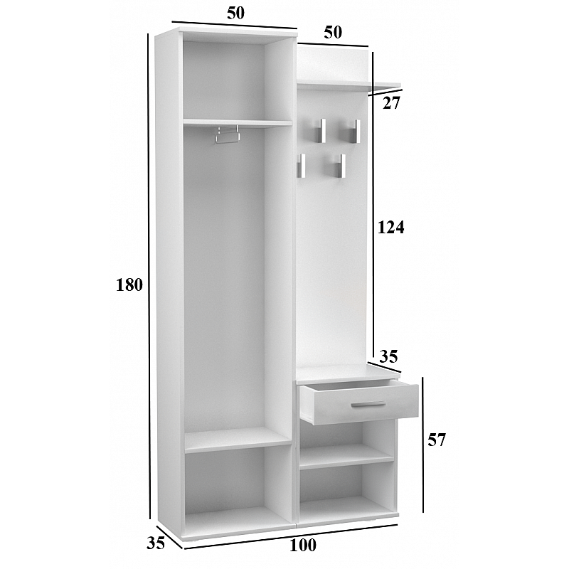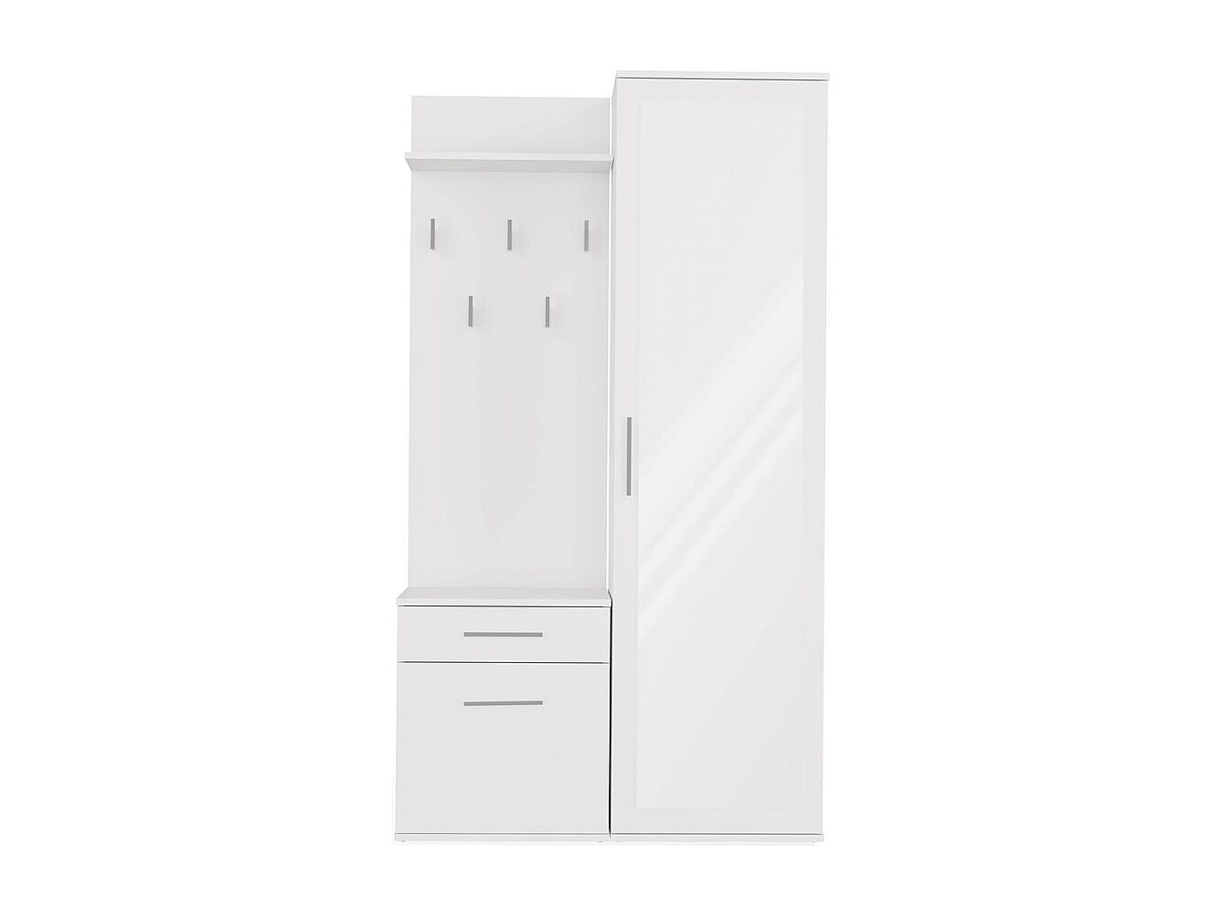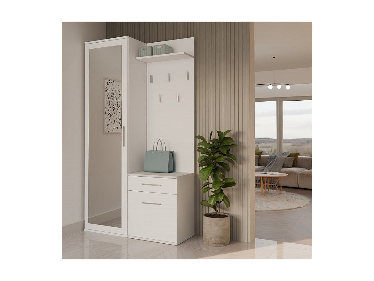 Garderoba Duo | Biała | 100x35x180 cm |Szafa, Lustro, Wieszak, Szuflada, Szafka