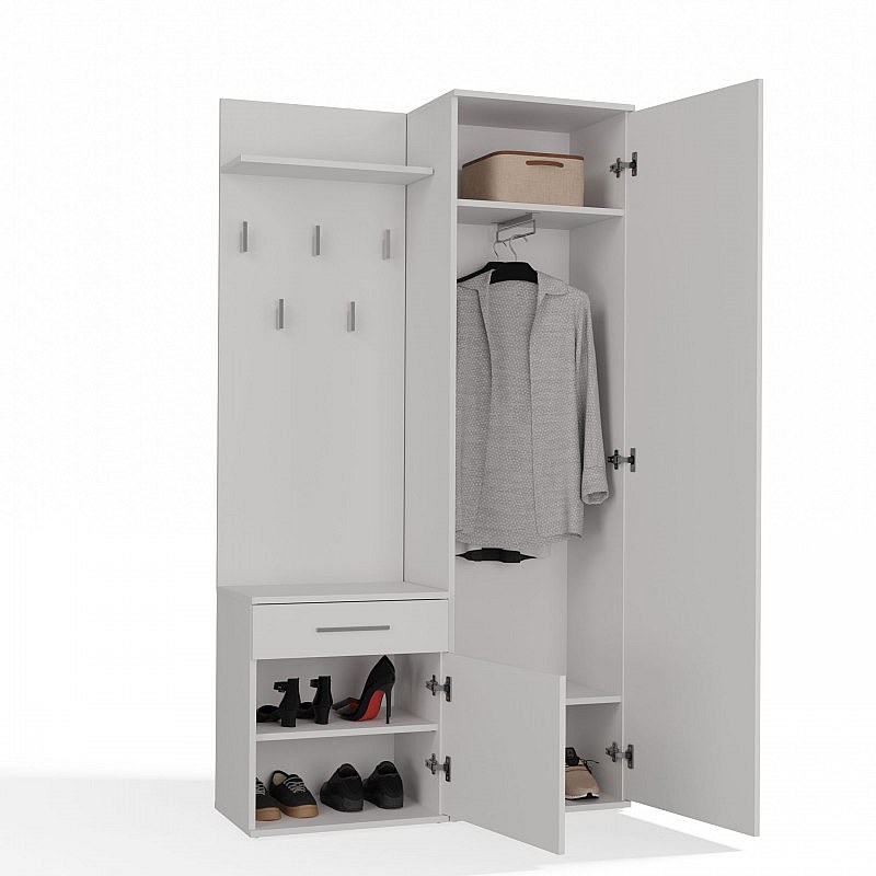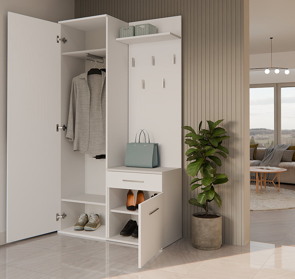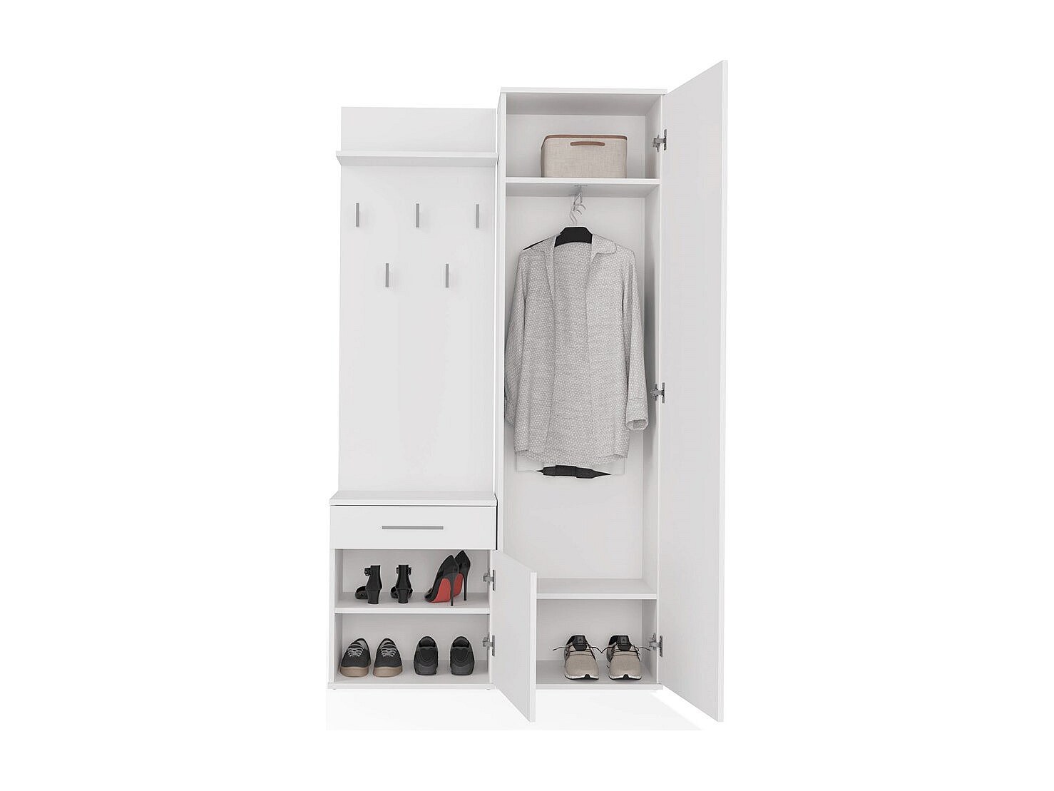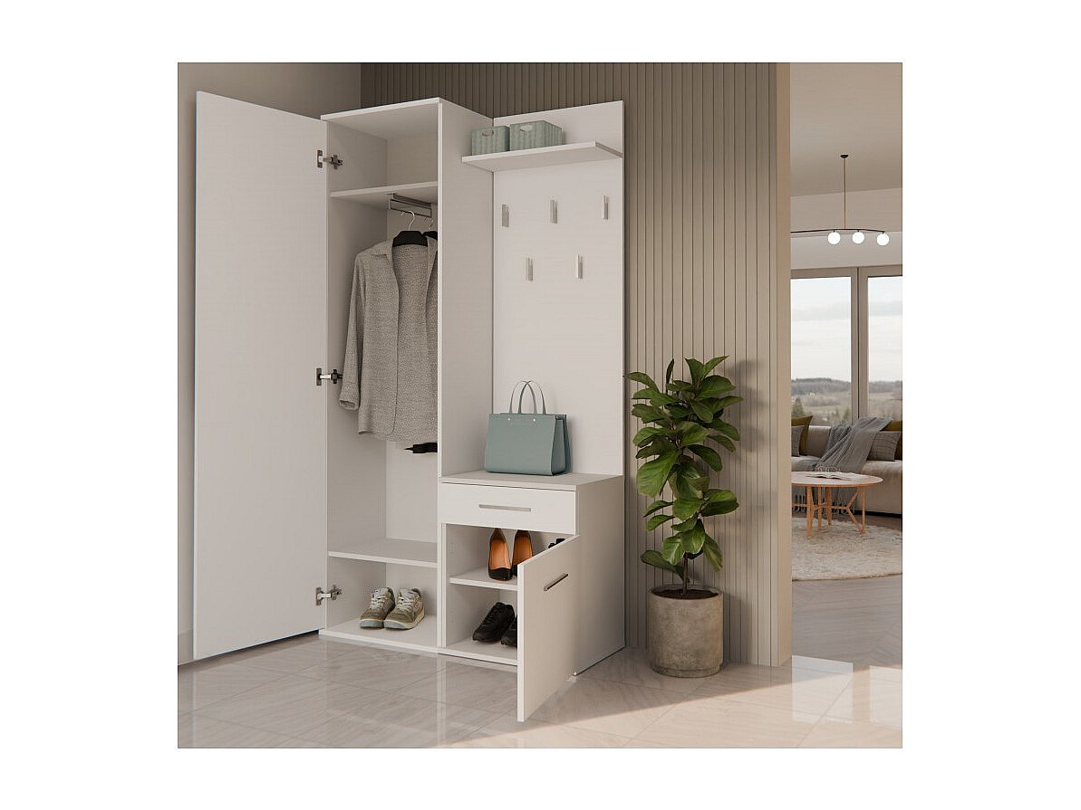Garderoba Duo | Biała | 100x35x180 cm |Szafa, Lustro, Wieszak, Szuflada, Szafka