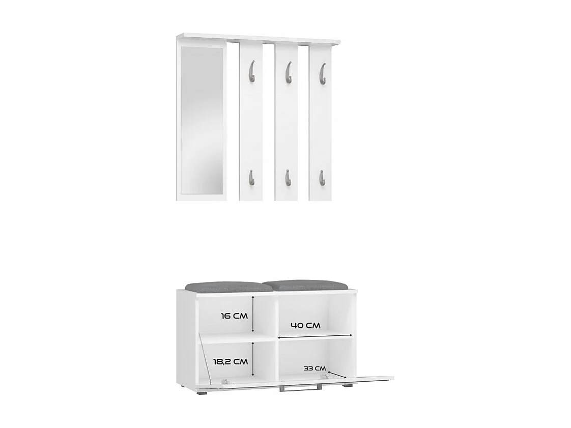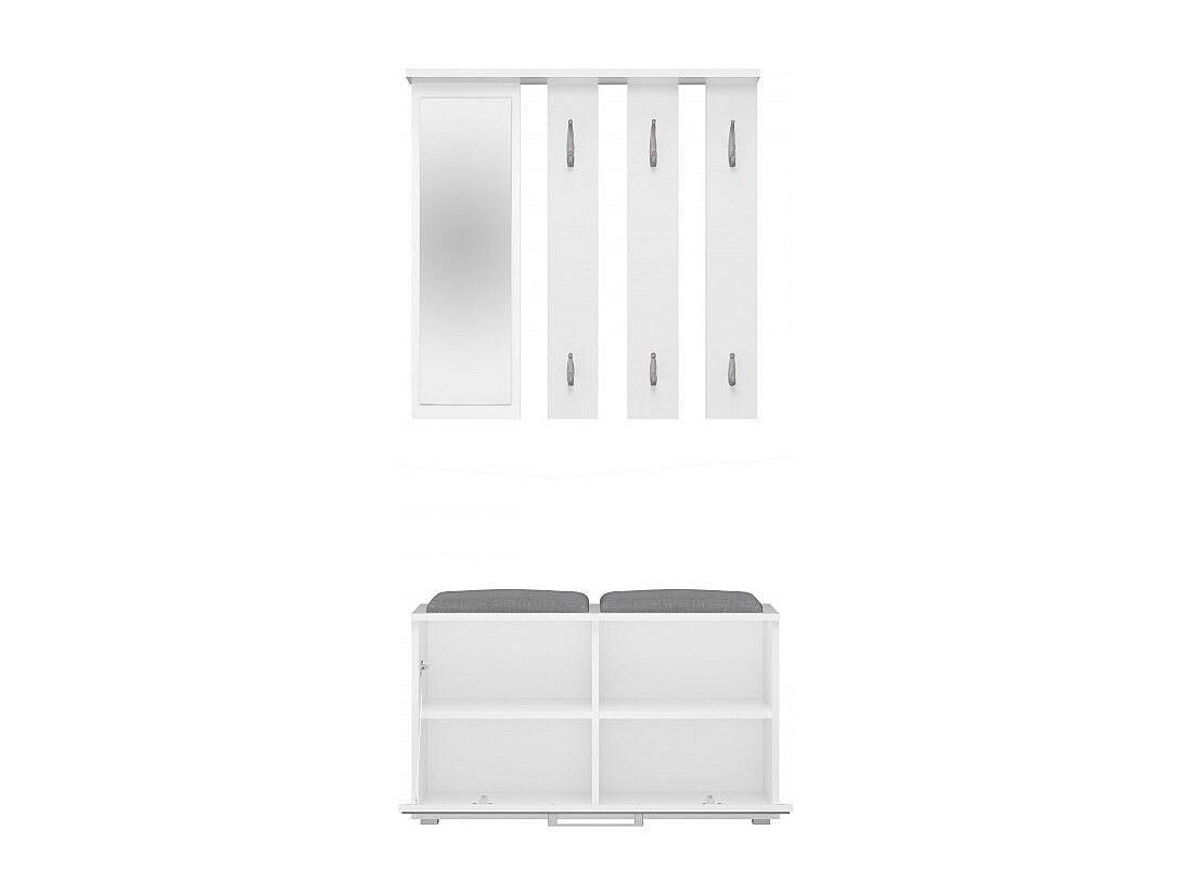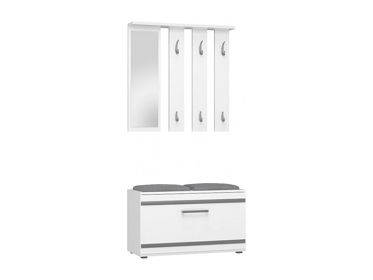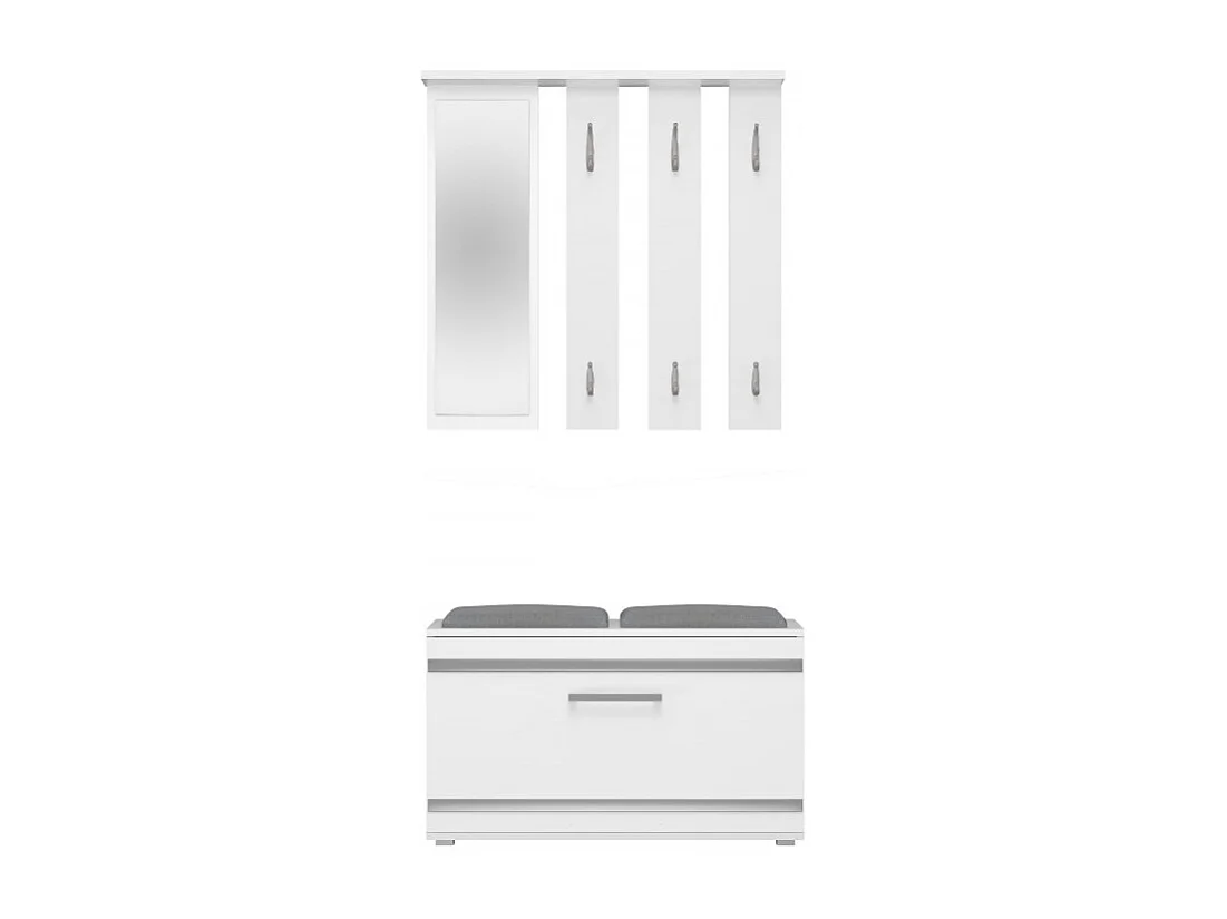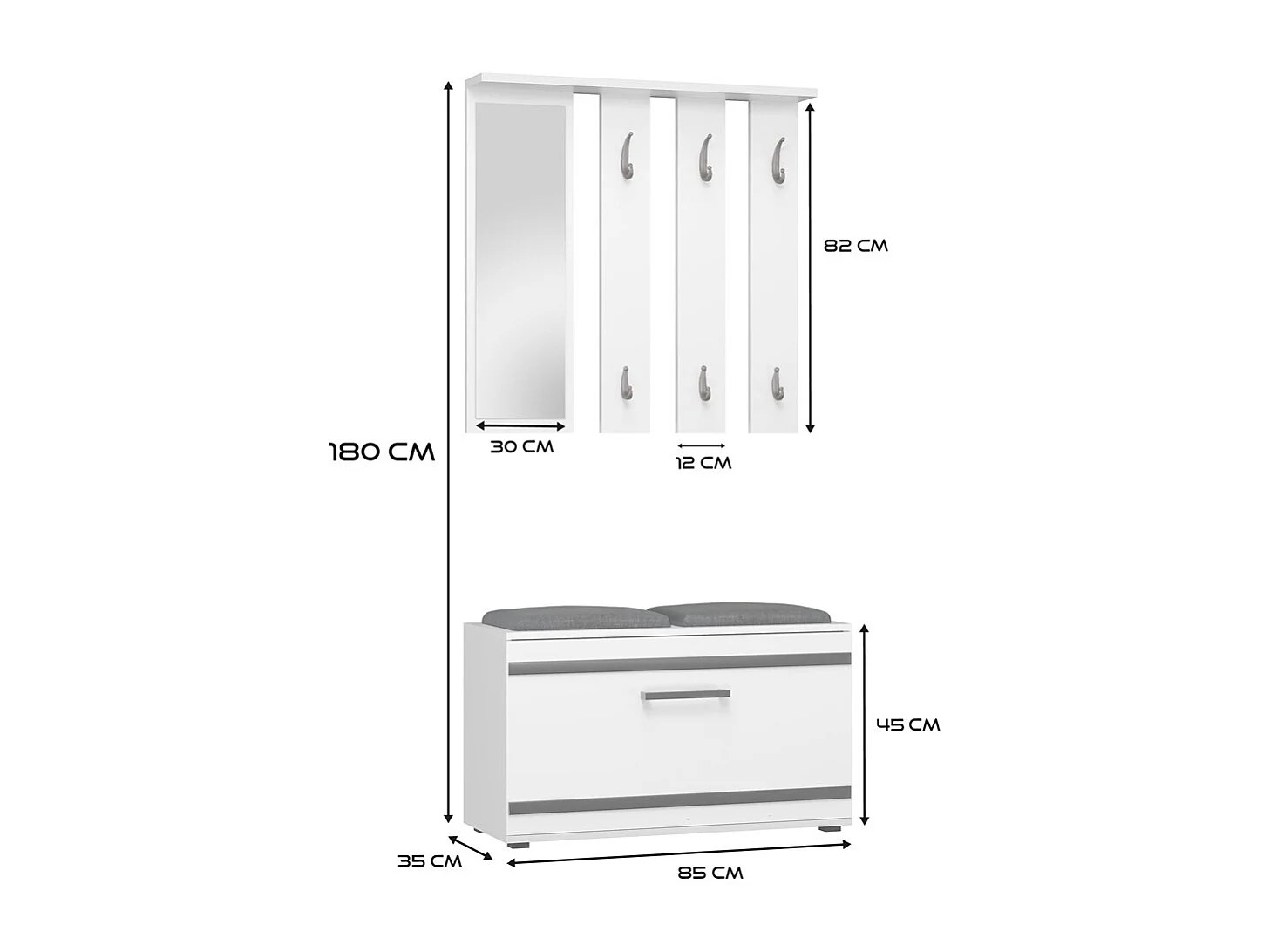 Garderoba Opal | Biała| 85x35x180 cm | Wieszak + Lustro + Szafka