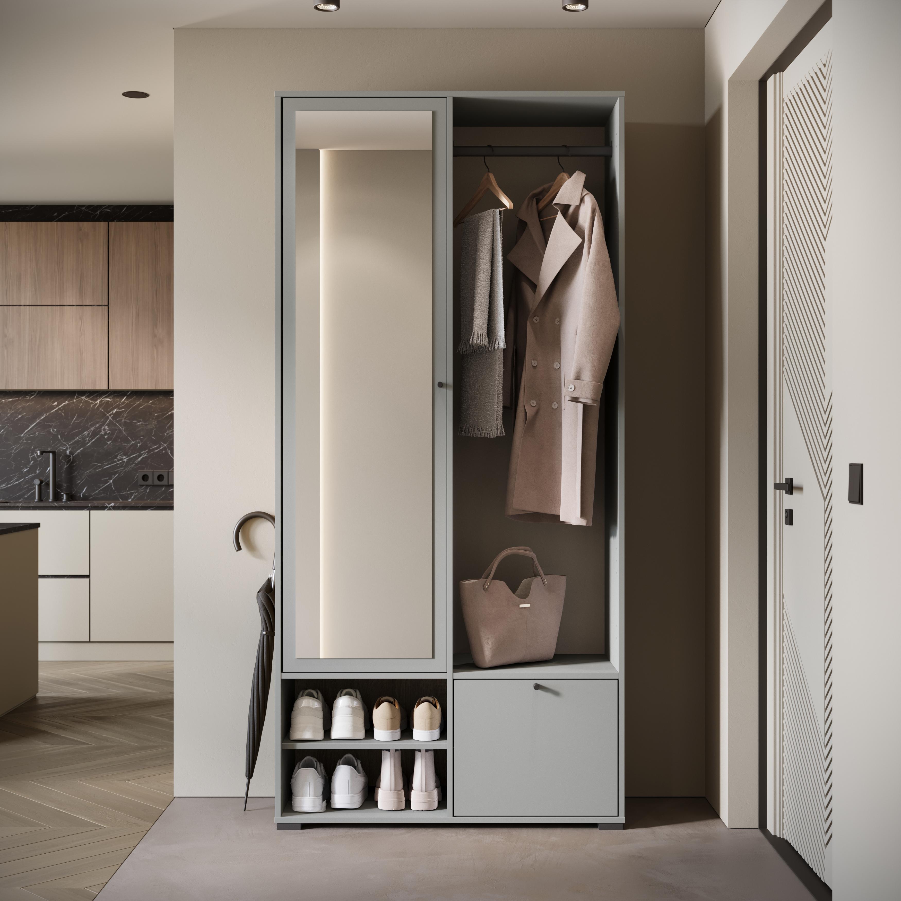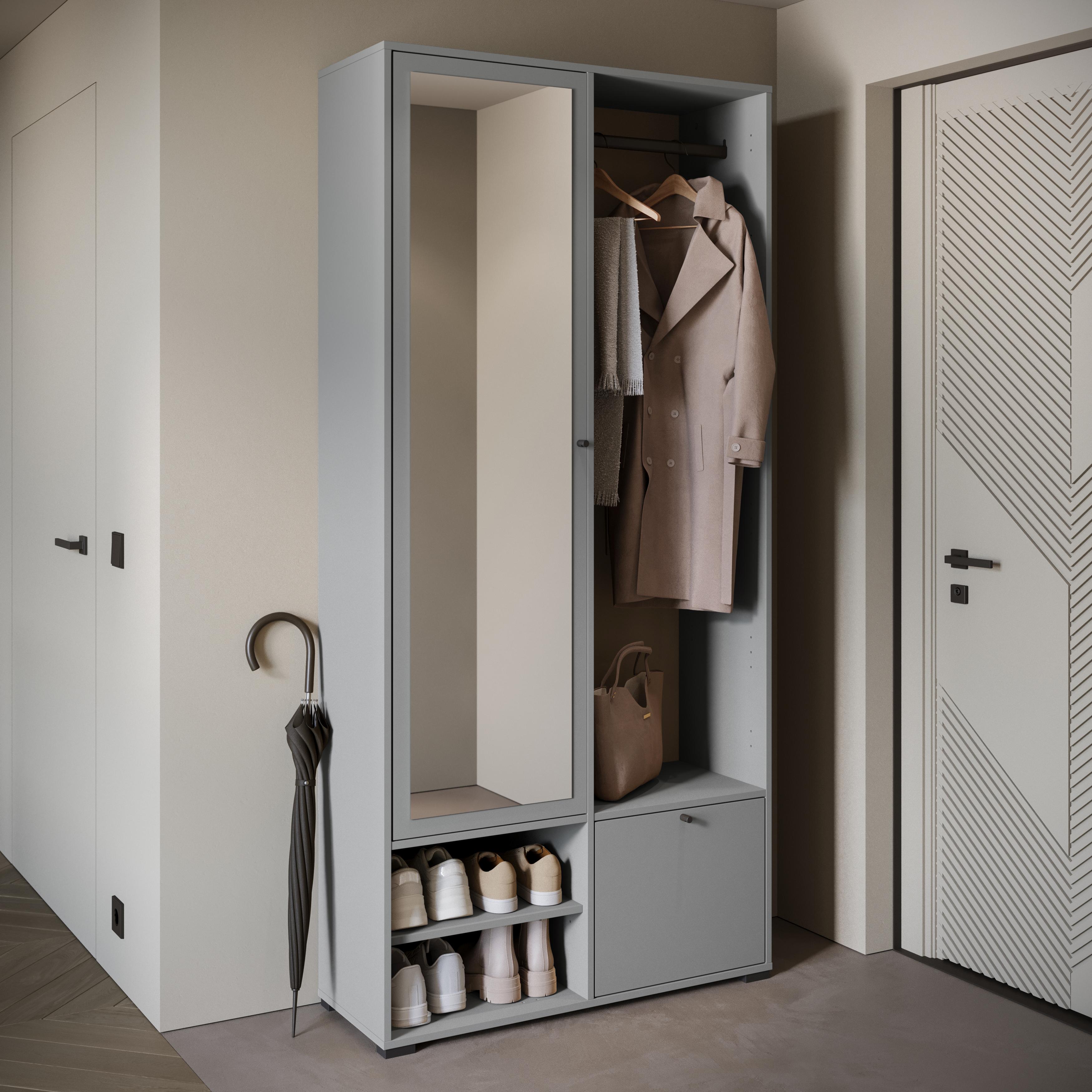 Nowoczesna garderoba 90 cm szafa do przedpokoju z lustrem półkami i drążkiem mat szary pallad