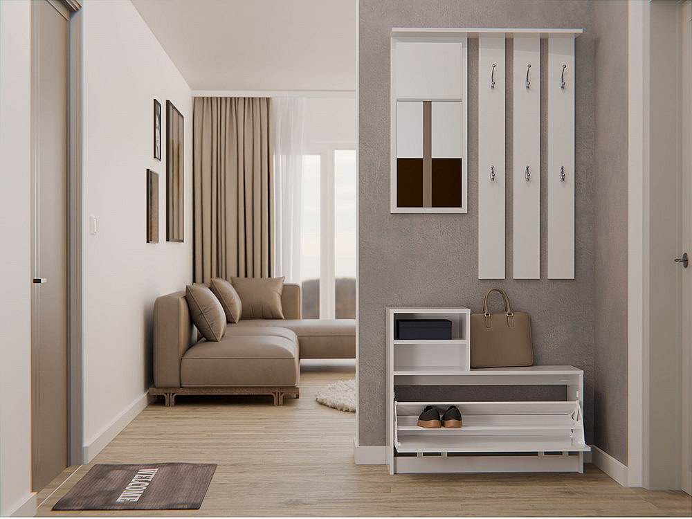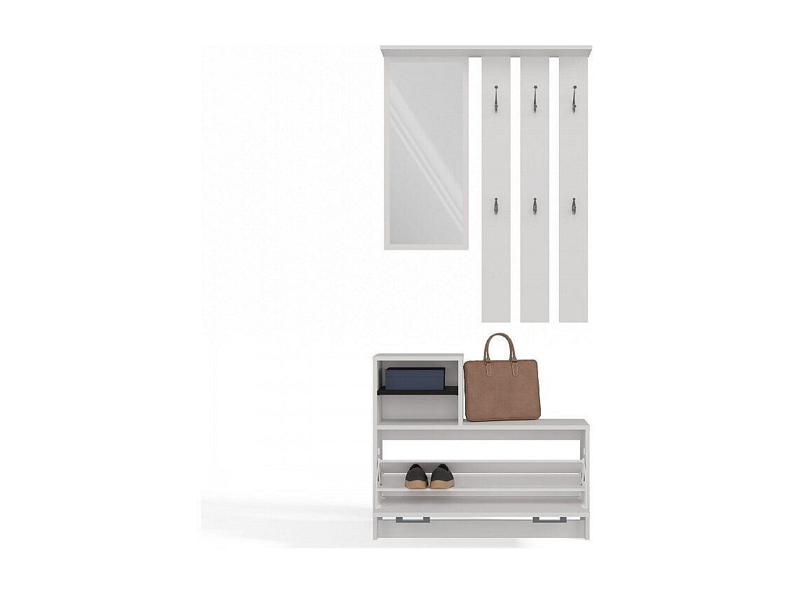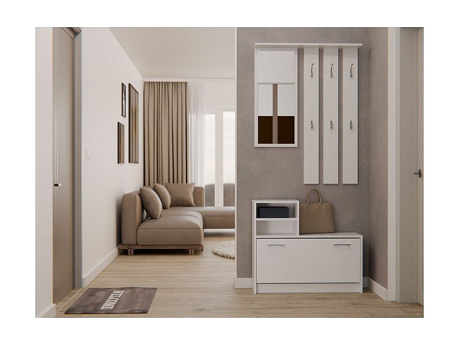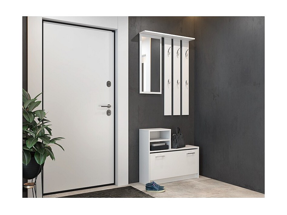 Garderoba Vera | Biała| 85x24x180 cm | Wieszak, Lustro, Szafka na Obuwie