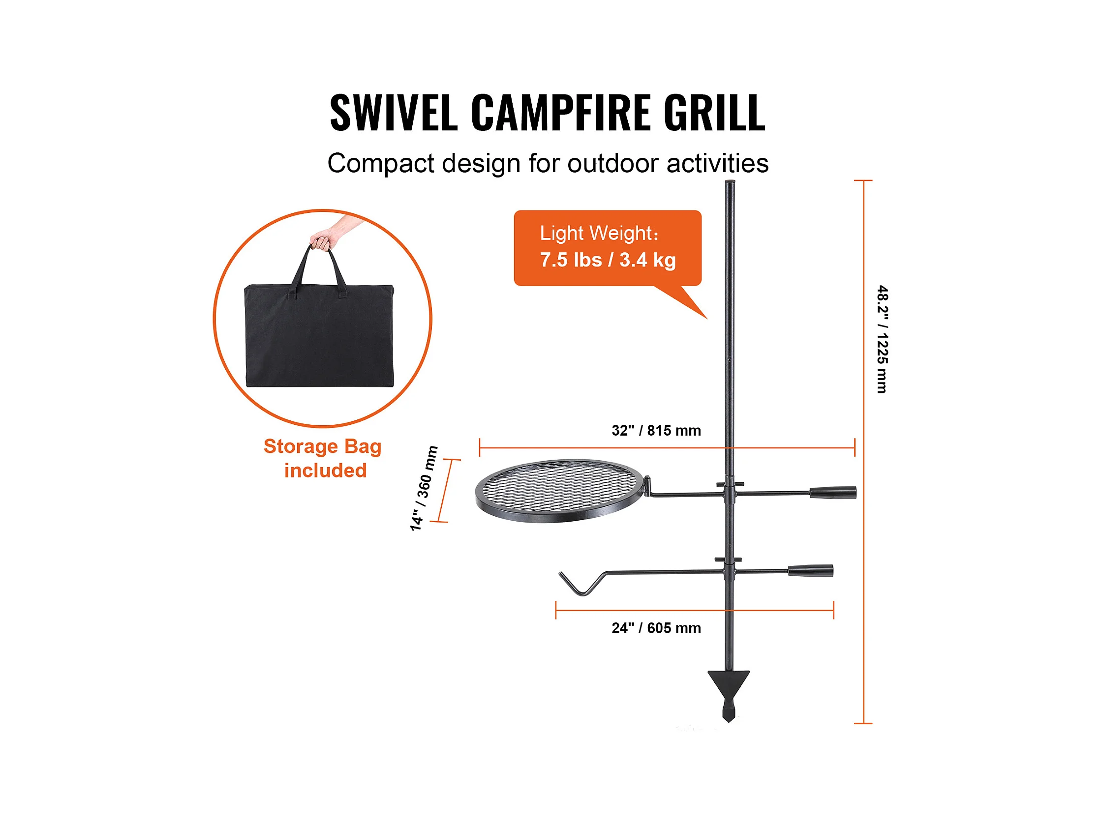 Grill, SucceBuy Rotating Camp Barbecue, Wytrzymała Stal, Regulowany Ruszt do Gotowania na Otwartym Ogniu, na Zewnątrz