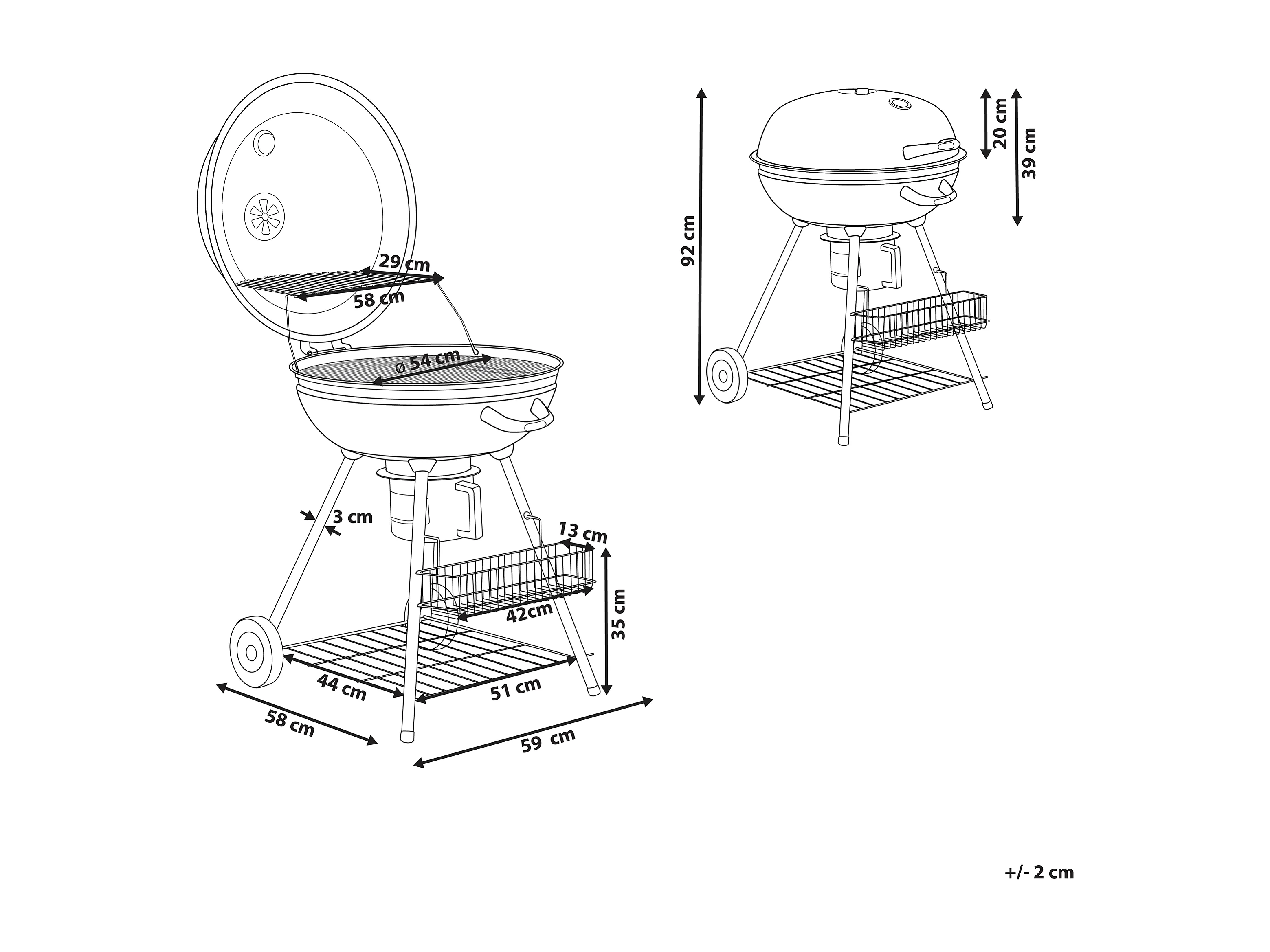Grill węglowy SATAH Z wędzarnią Metal Czarny