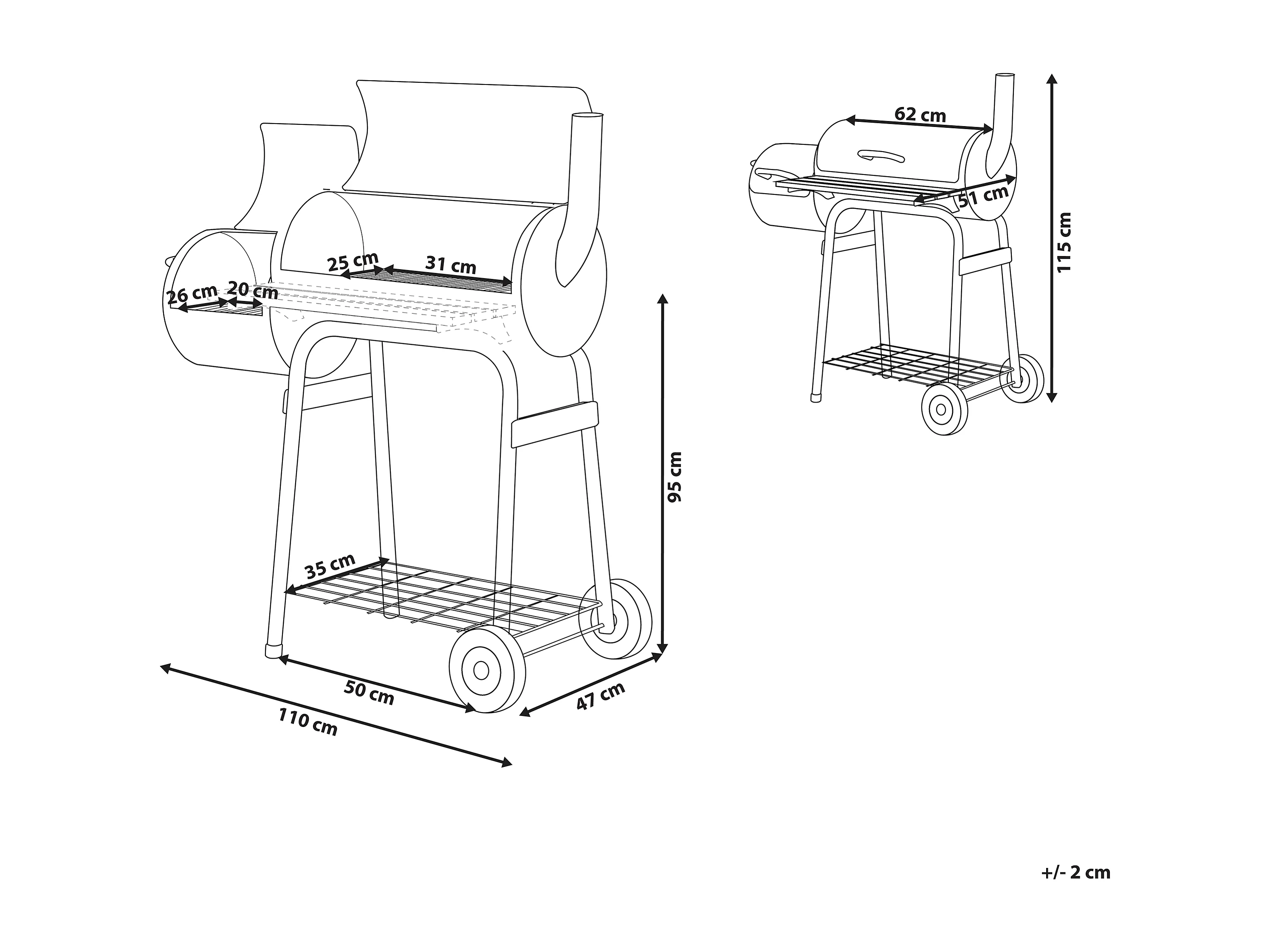 Grill węglowy SATAH Z wędzarnią Metal Czarny