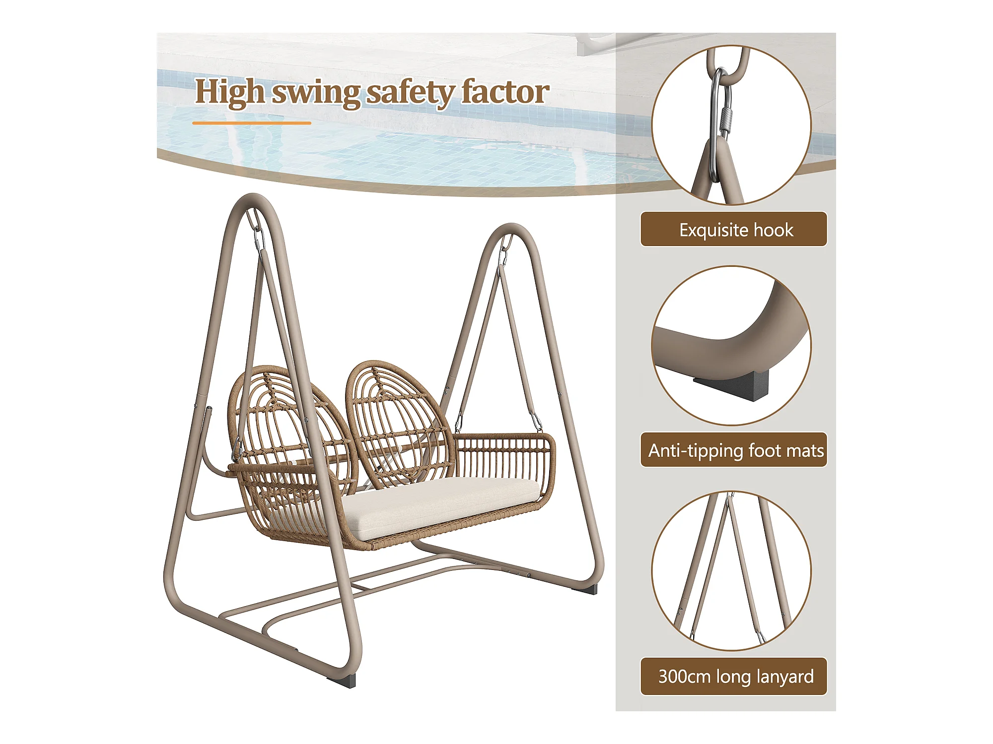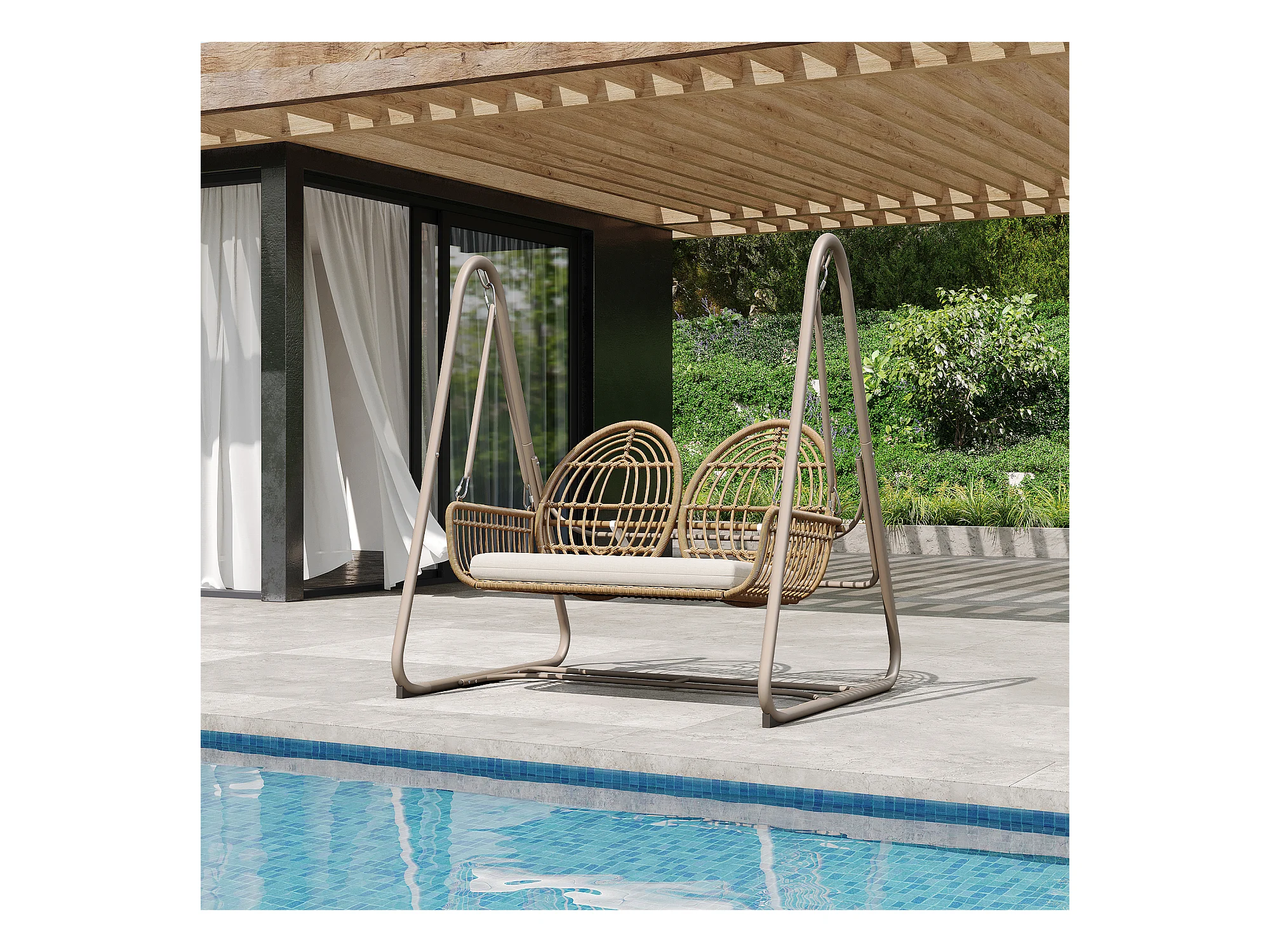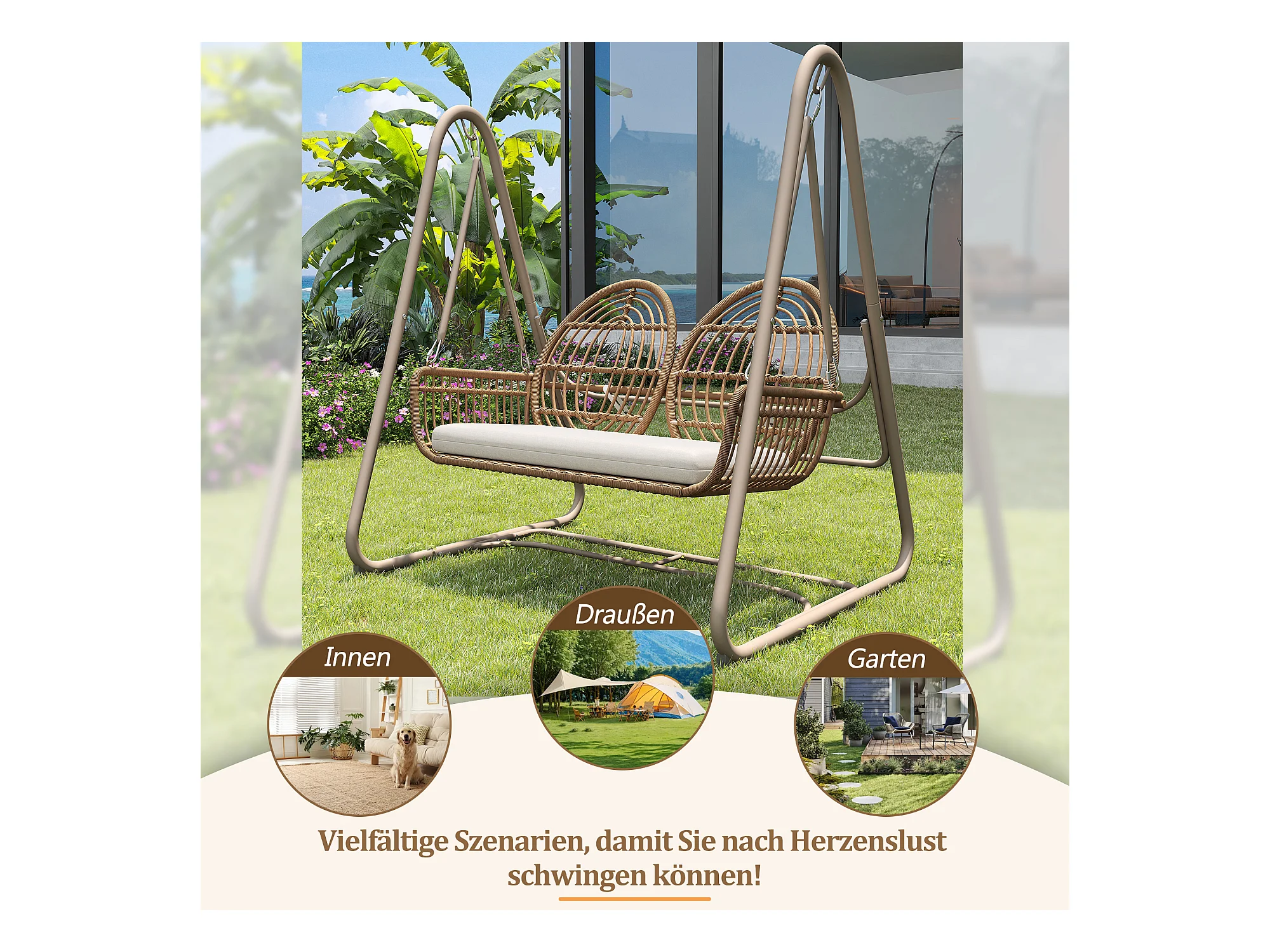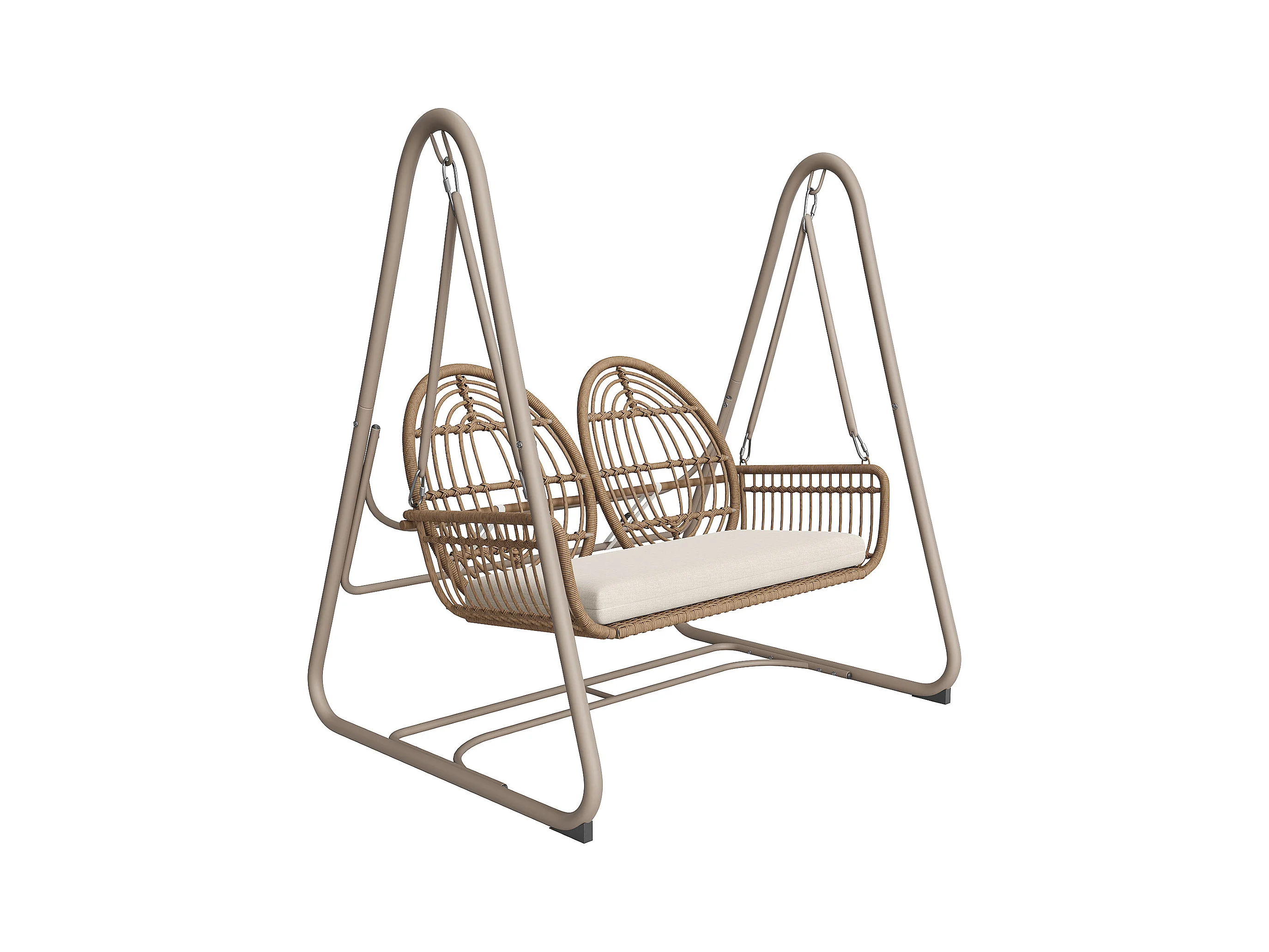 Huśtawka ogrodowa PE rattan 2-osobowa, huśtawka ogrodowa, zewnętrzna, 141 x 109 x 143 cm - Beżowa
