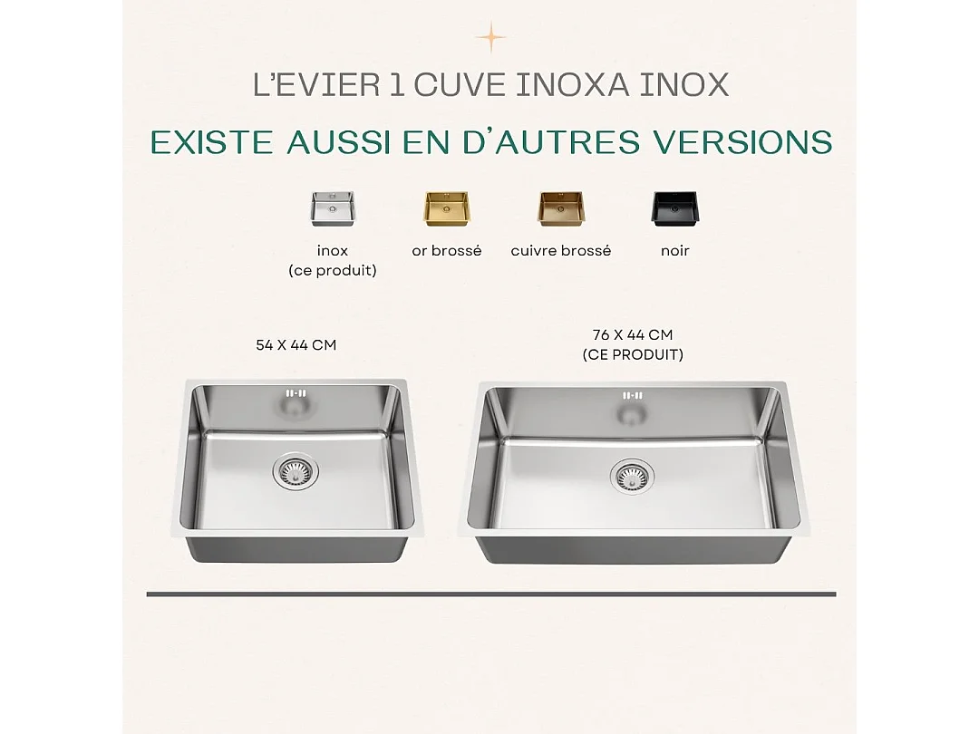 Inoxa zlewozmywak 1 duża komora 76x44 ze stali nierdzewnej - Essebagno