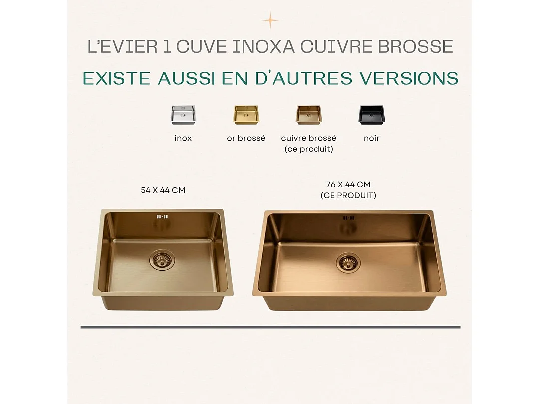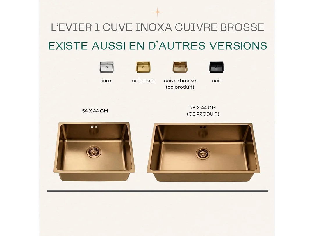 Inoxa zlewozmywak 1 komora 76x44 ze stali nierdzewnej szczotkowanej miedzi - Essebagno