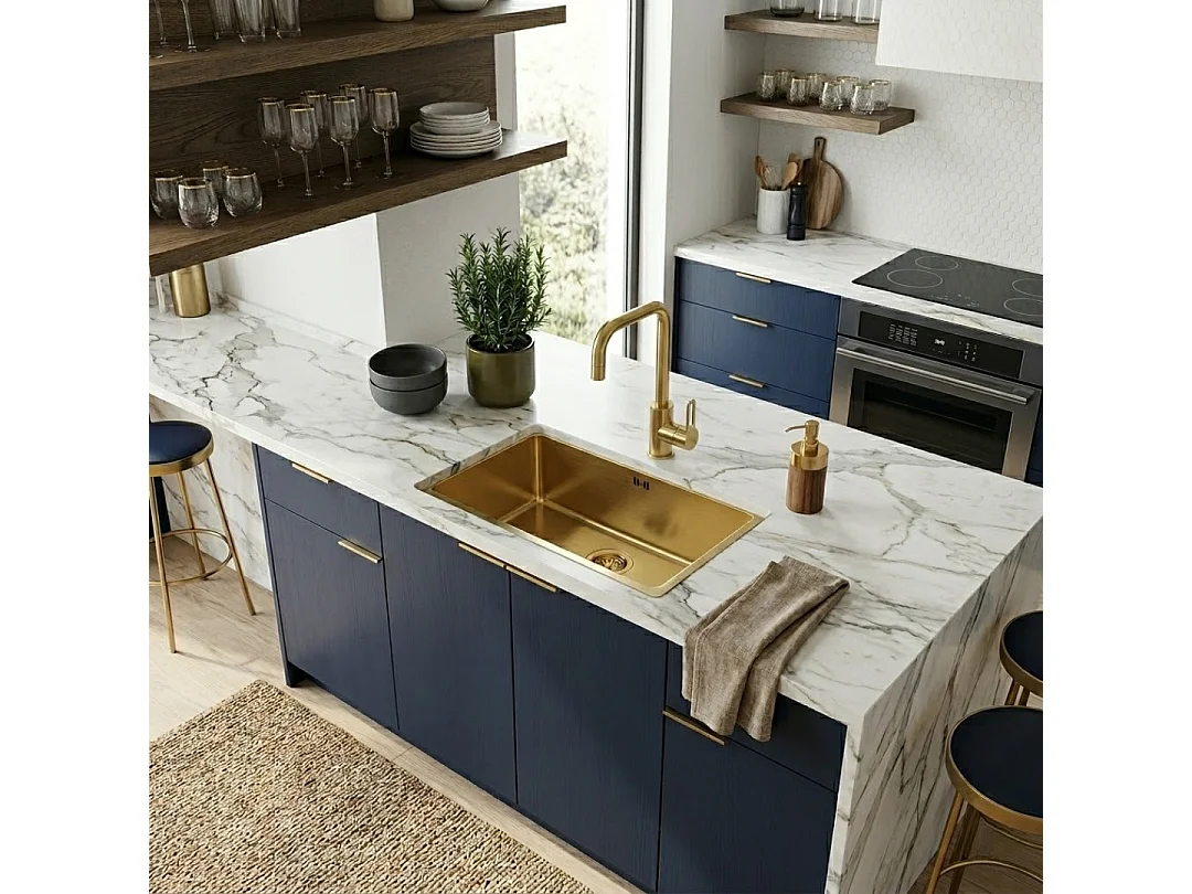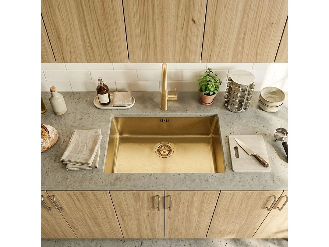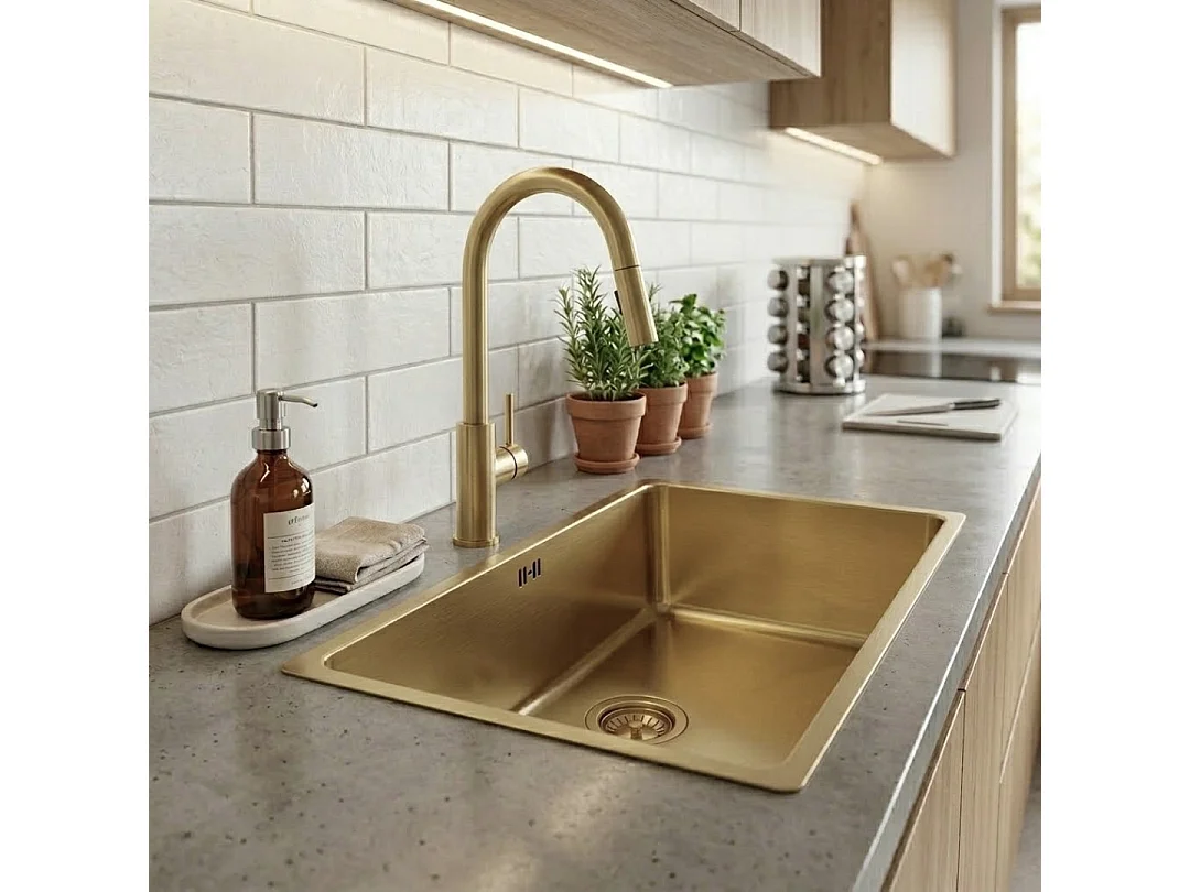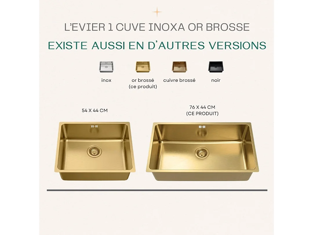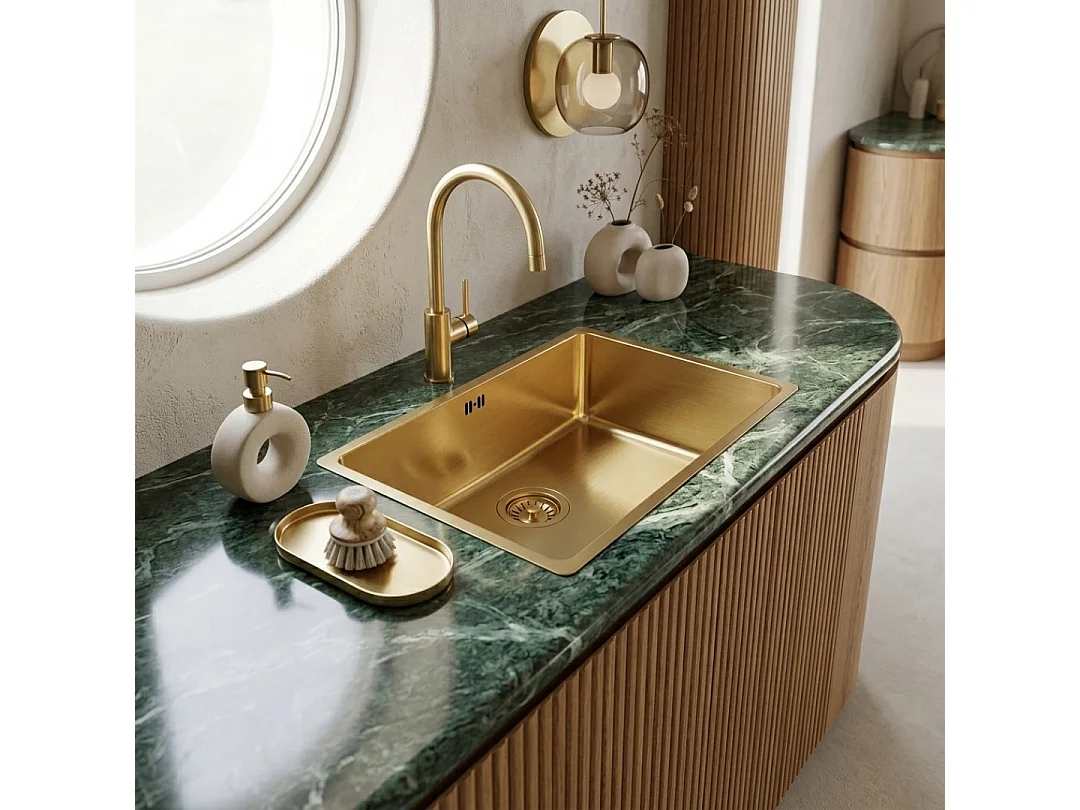 Inoxa zlewozmywak 1 duża komora 76x44 ze stali nierdzewnej szczotkowanej złoto - Essebagno
