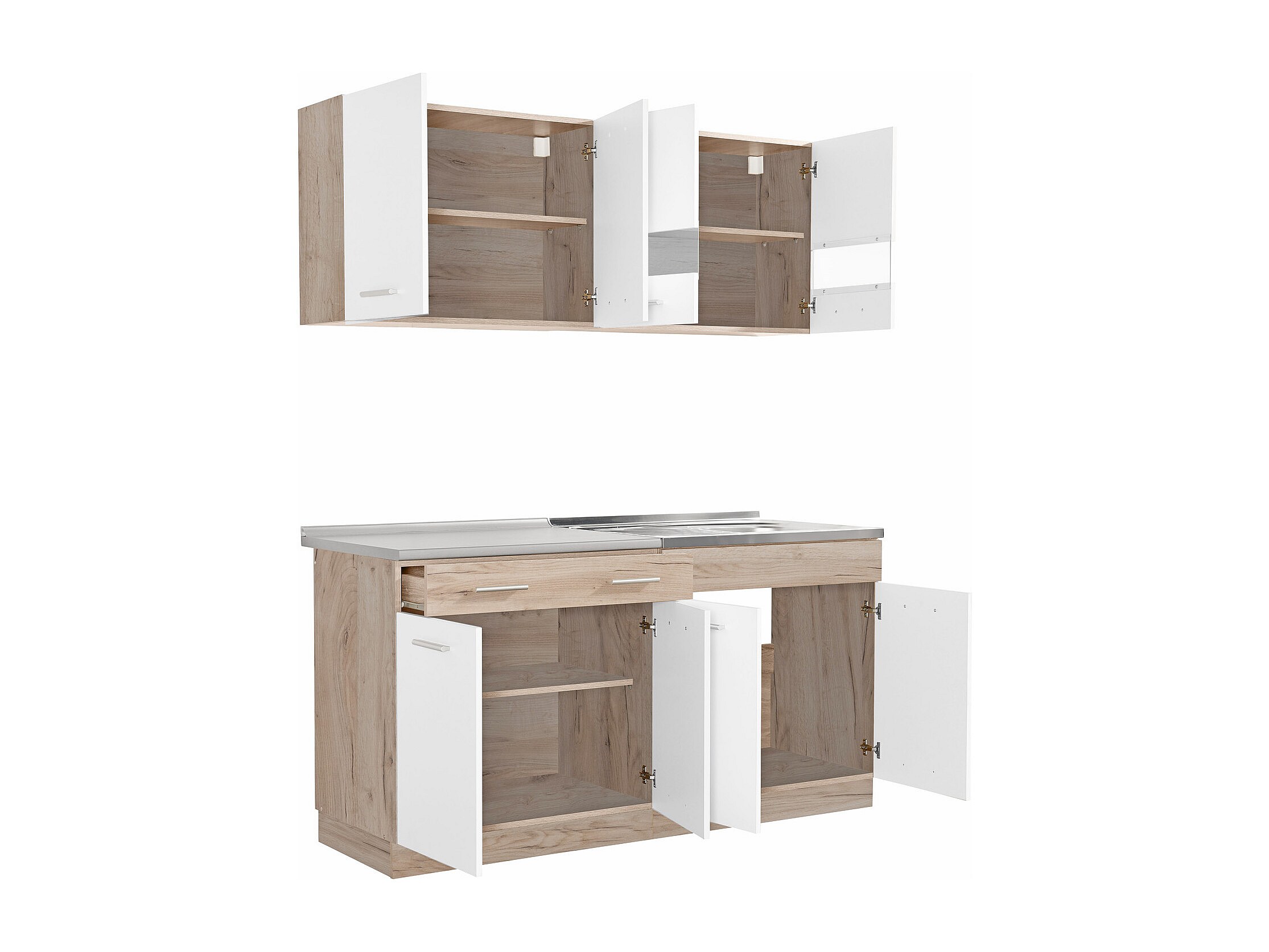 Jednostka kuchenna 160x84x60 cm, biały i szary dąb, wygląd drewna