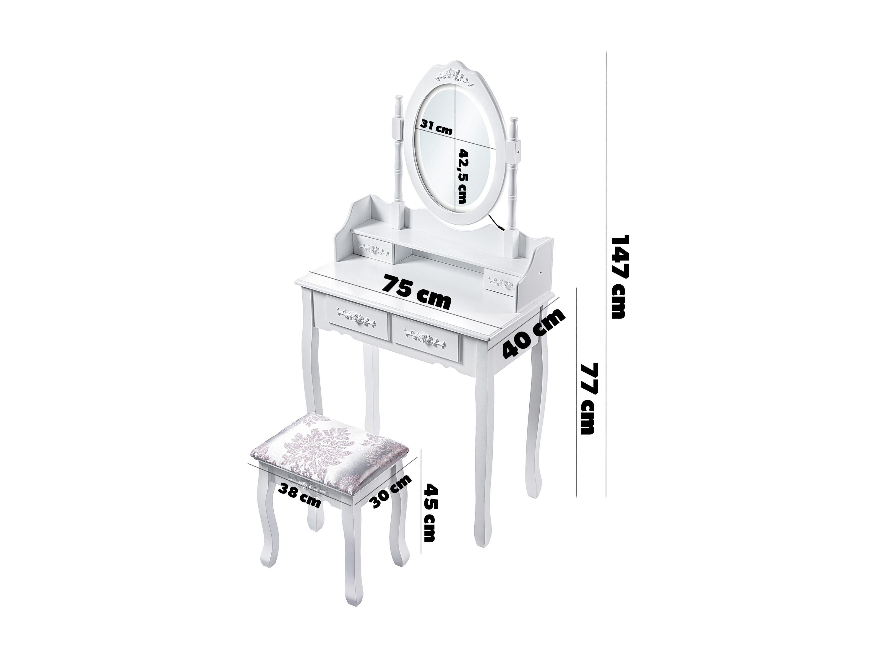 KADAX Toaletka z lustrem i taboretem 147 x 75 cm, biała