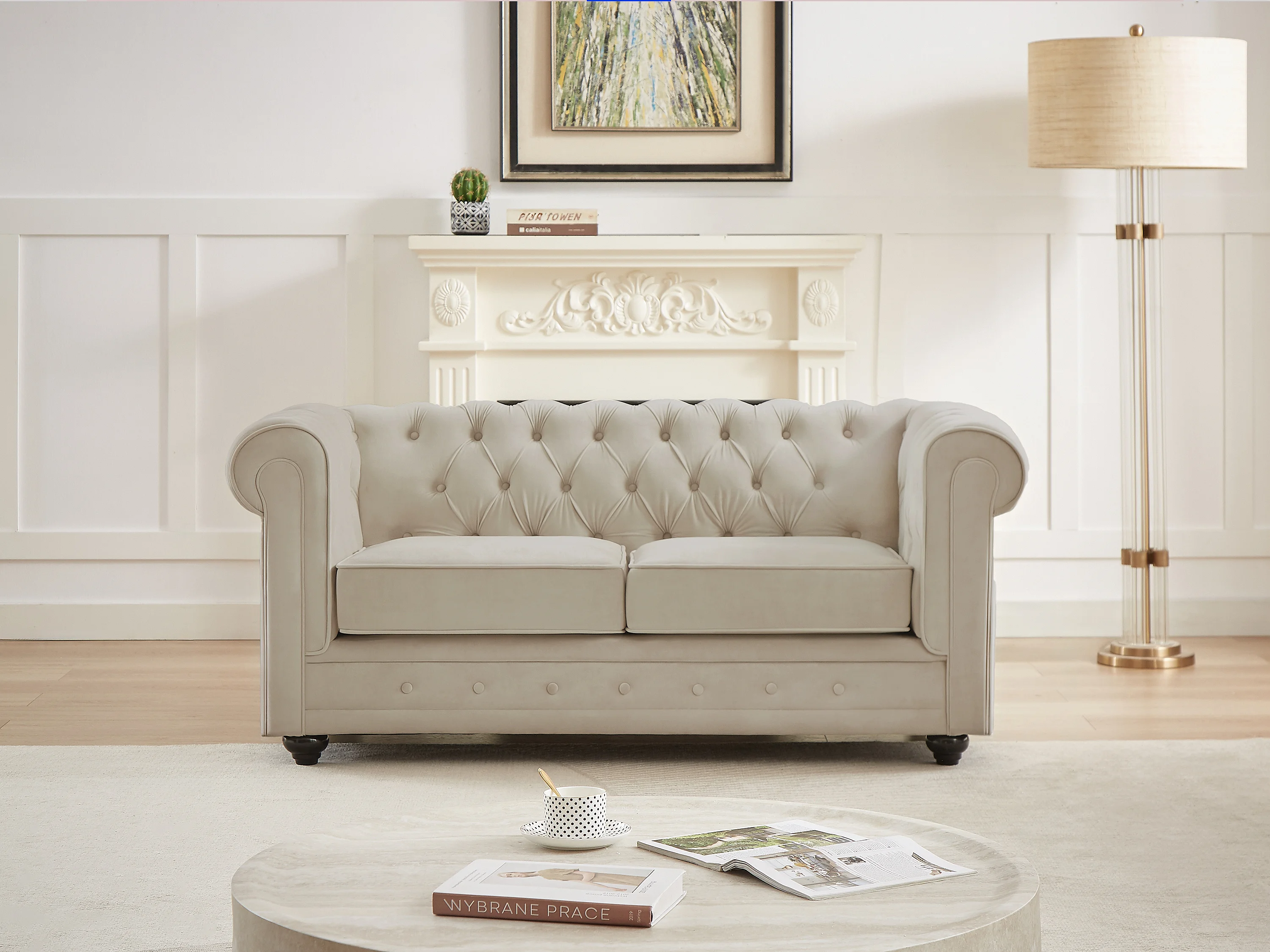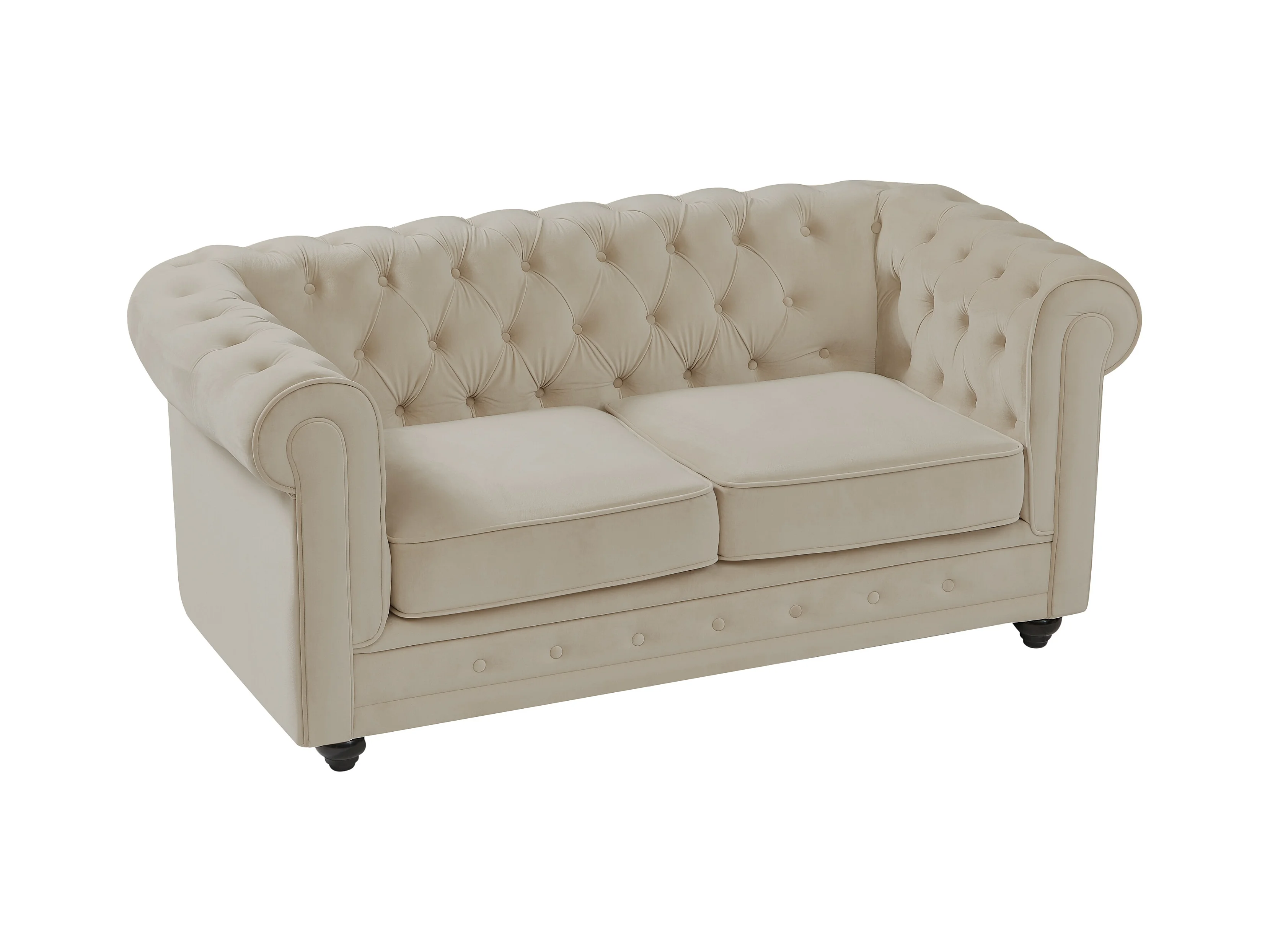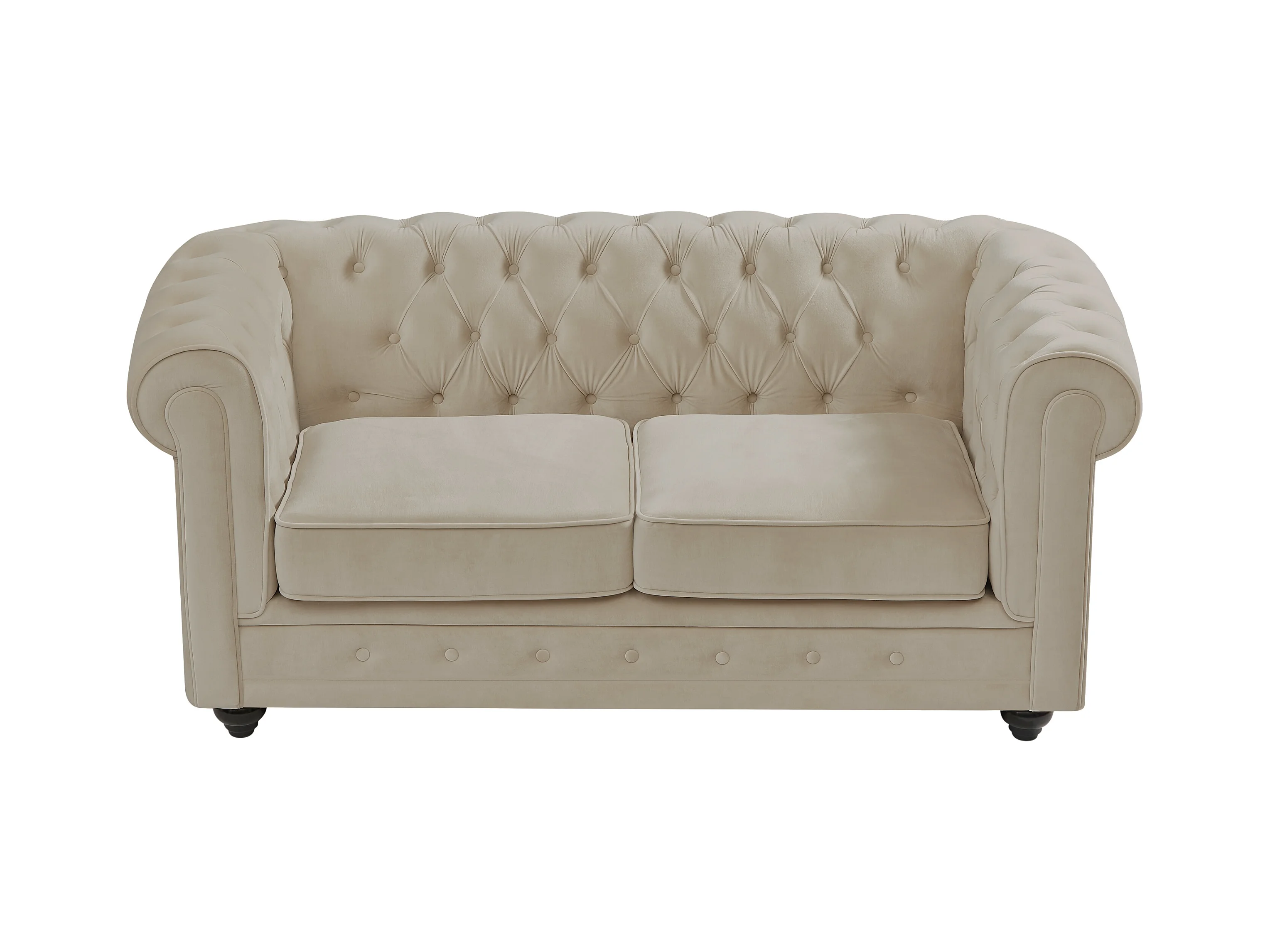 Kanapa 2-osobowa z beżowego weluru - CHESTERFIELD