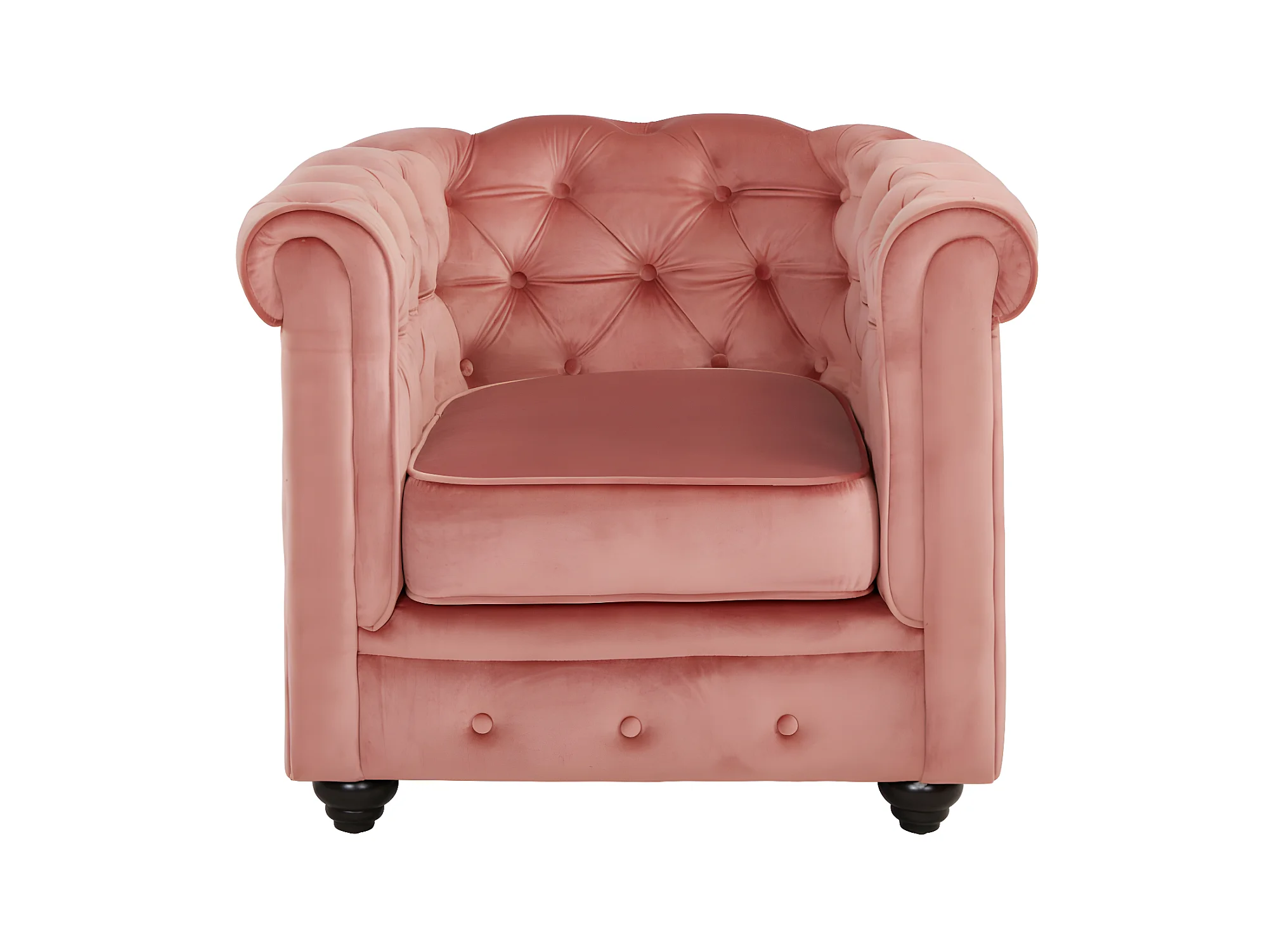 Kanapa 3-osobowa i 2 fotele CHESTERFIELD - Pasteloworóżowy welur