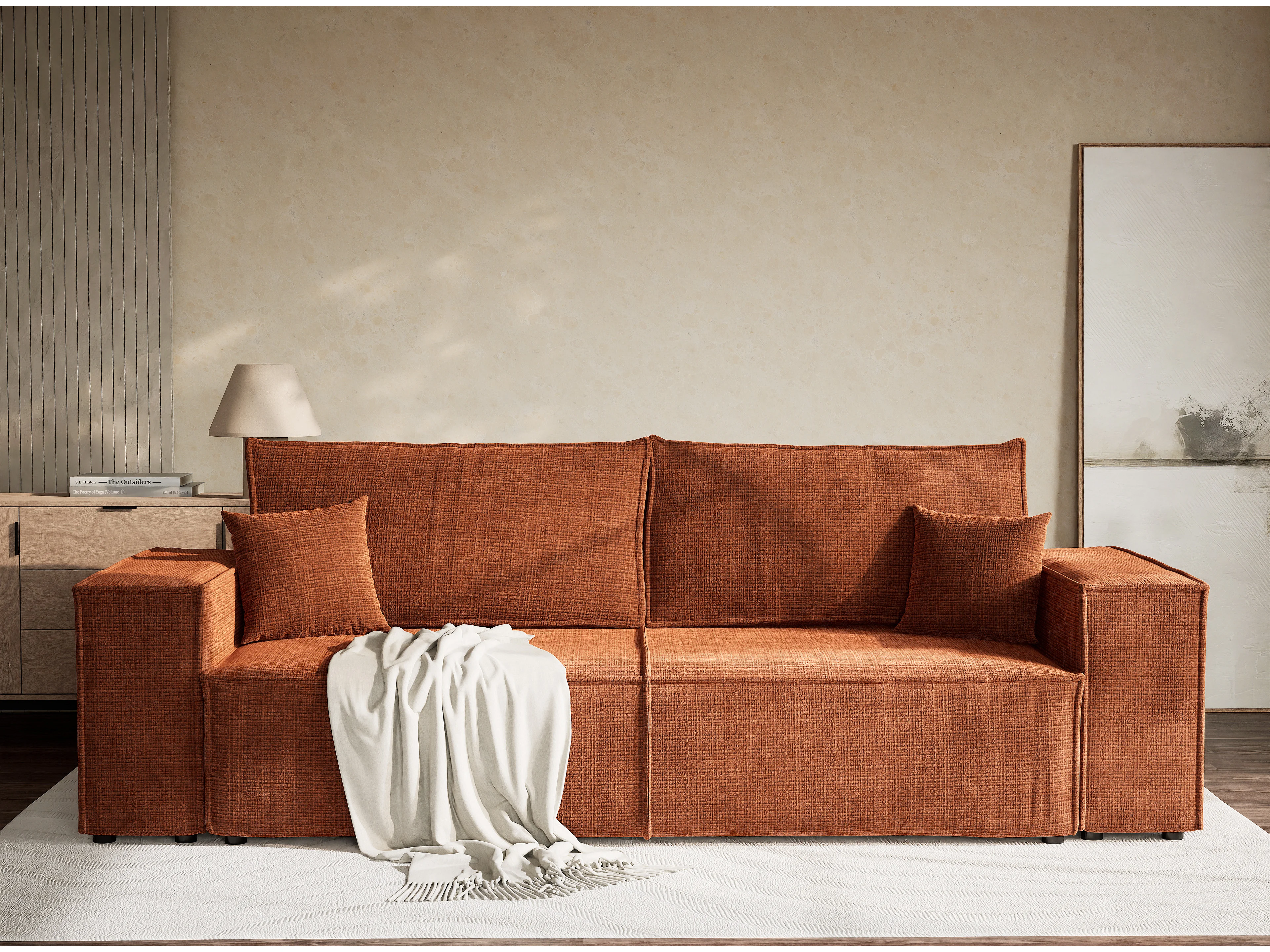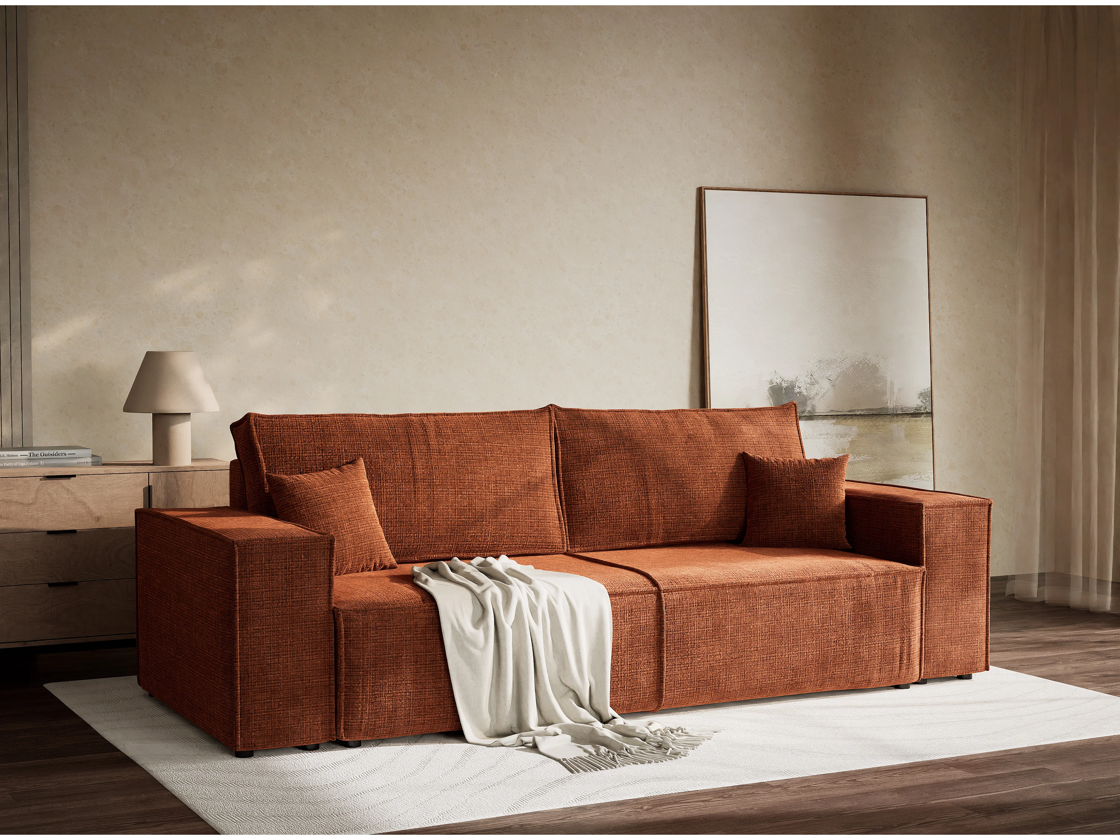 Kanapa 3-osobowa rozkładana z szenilowej tkaniny - miedziana - MILOS