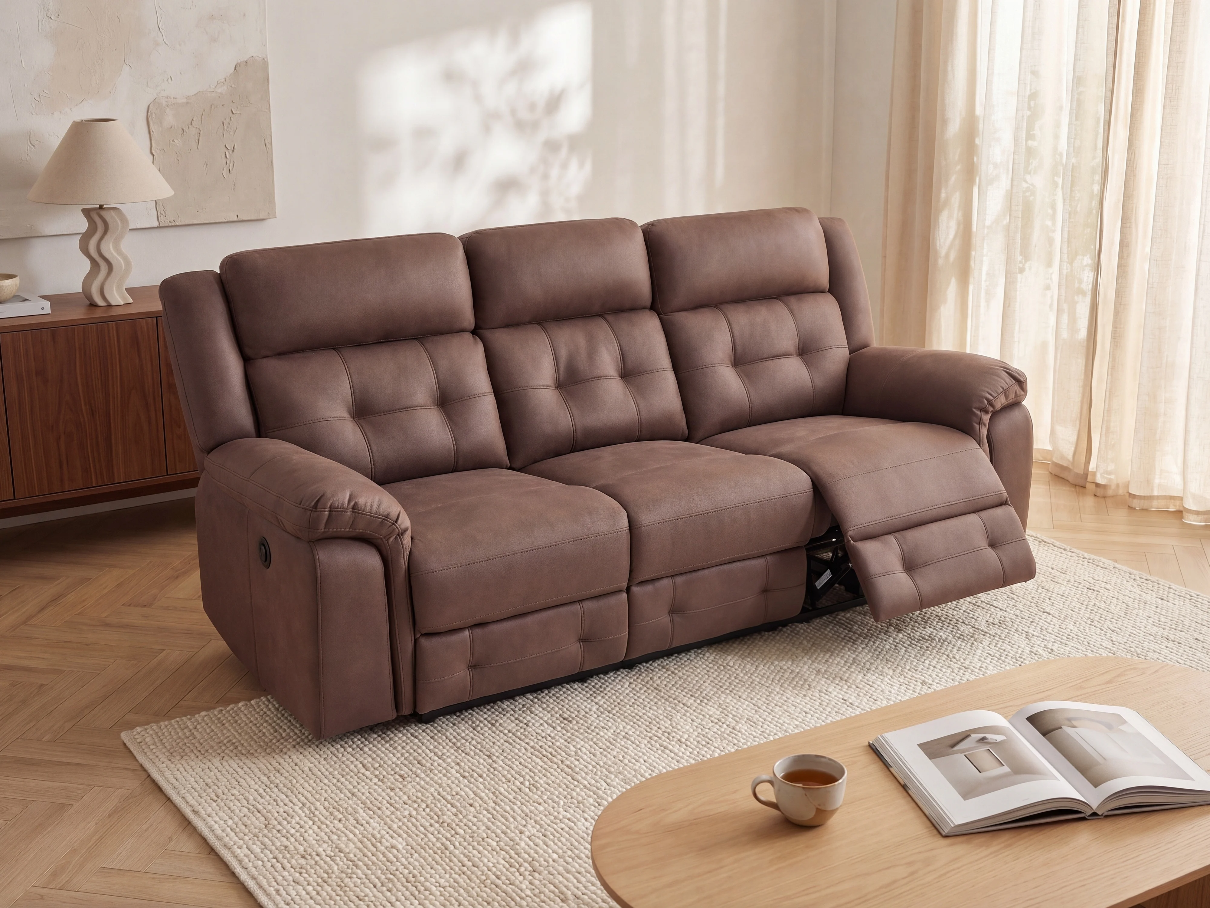 Kanapa 3-osobowa z elektryczną funkcją relax z brązowej mikrofibry o wyglądzie postarzanej skóry - ORTIANO