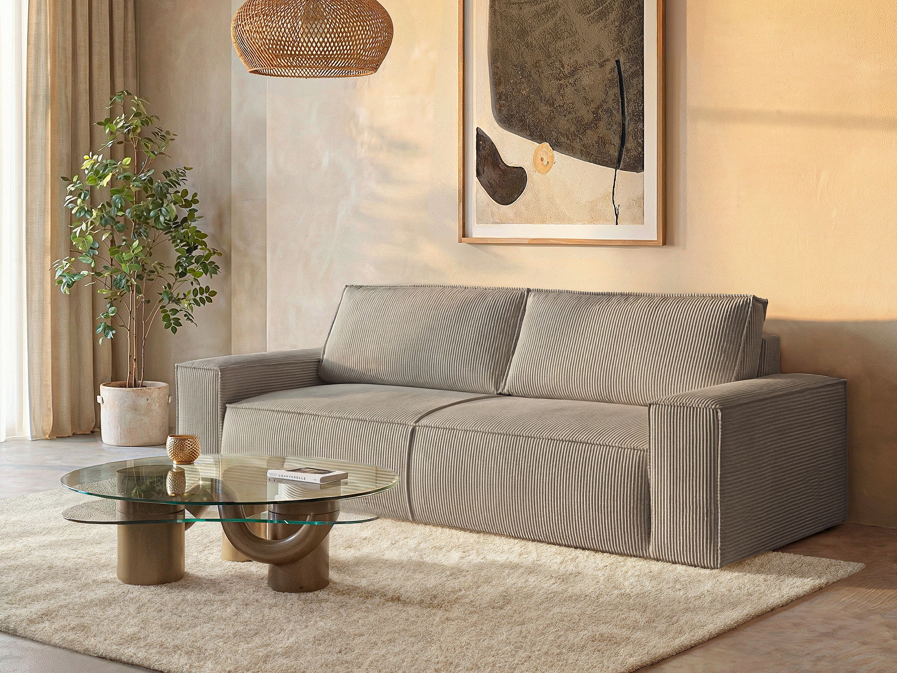 Kanapa 4-osobowa rozkładana ze sztruksu taupe - AMELIA
