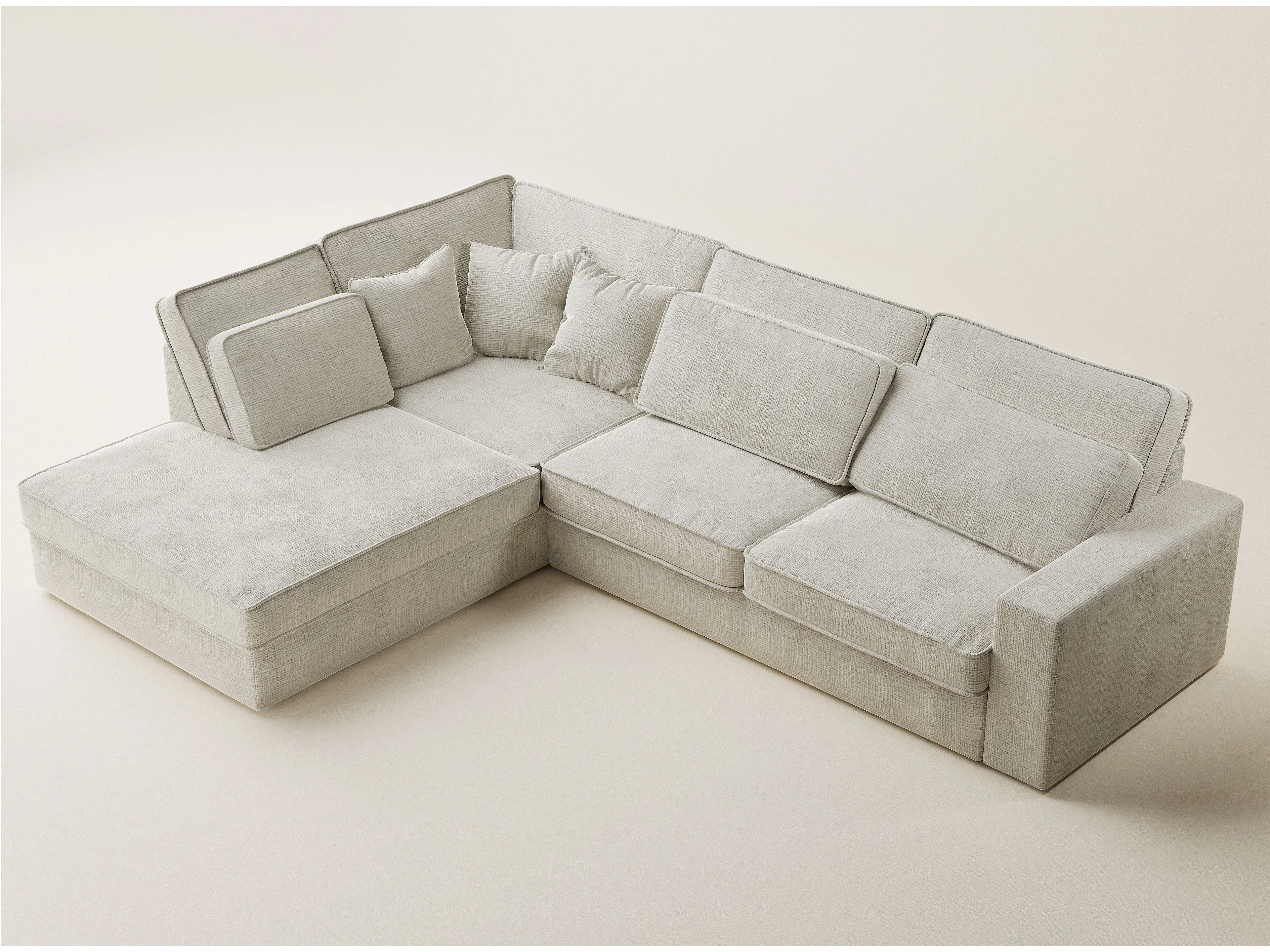Kanapa narożna lewostronna 5-osobowa KIROU - szenilowa tkanina - beżowoszary