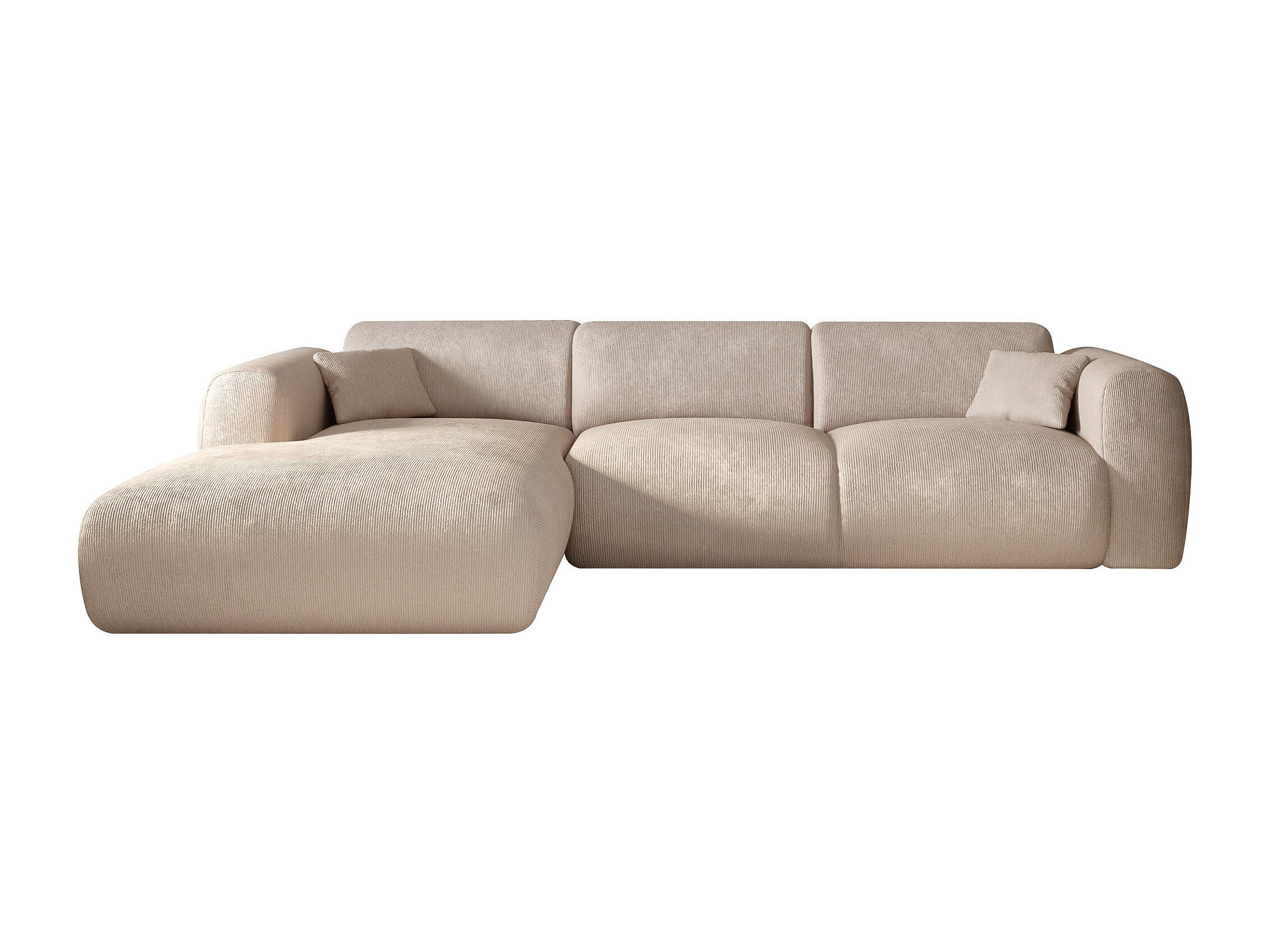 Duża kanapa narożna lewostronna z beżowej teksturowanej tkaniny POGNI marki Maison Céphy