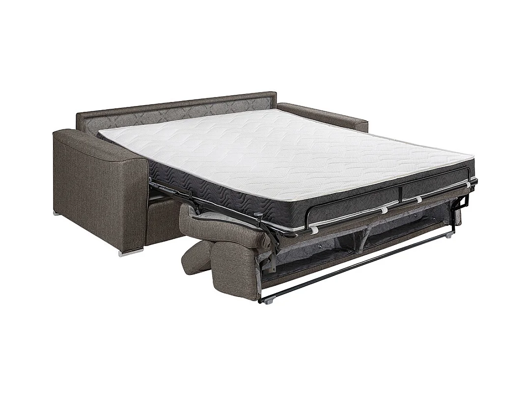 Kanapa rozkładana 3-osobowa VIZIR typu express z tkaniny – kolor szary – miejsce do spania z szerokimi listewkami 140 cm – materac 16 cm z pamięcią kształtu