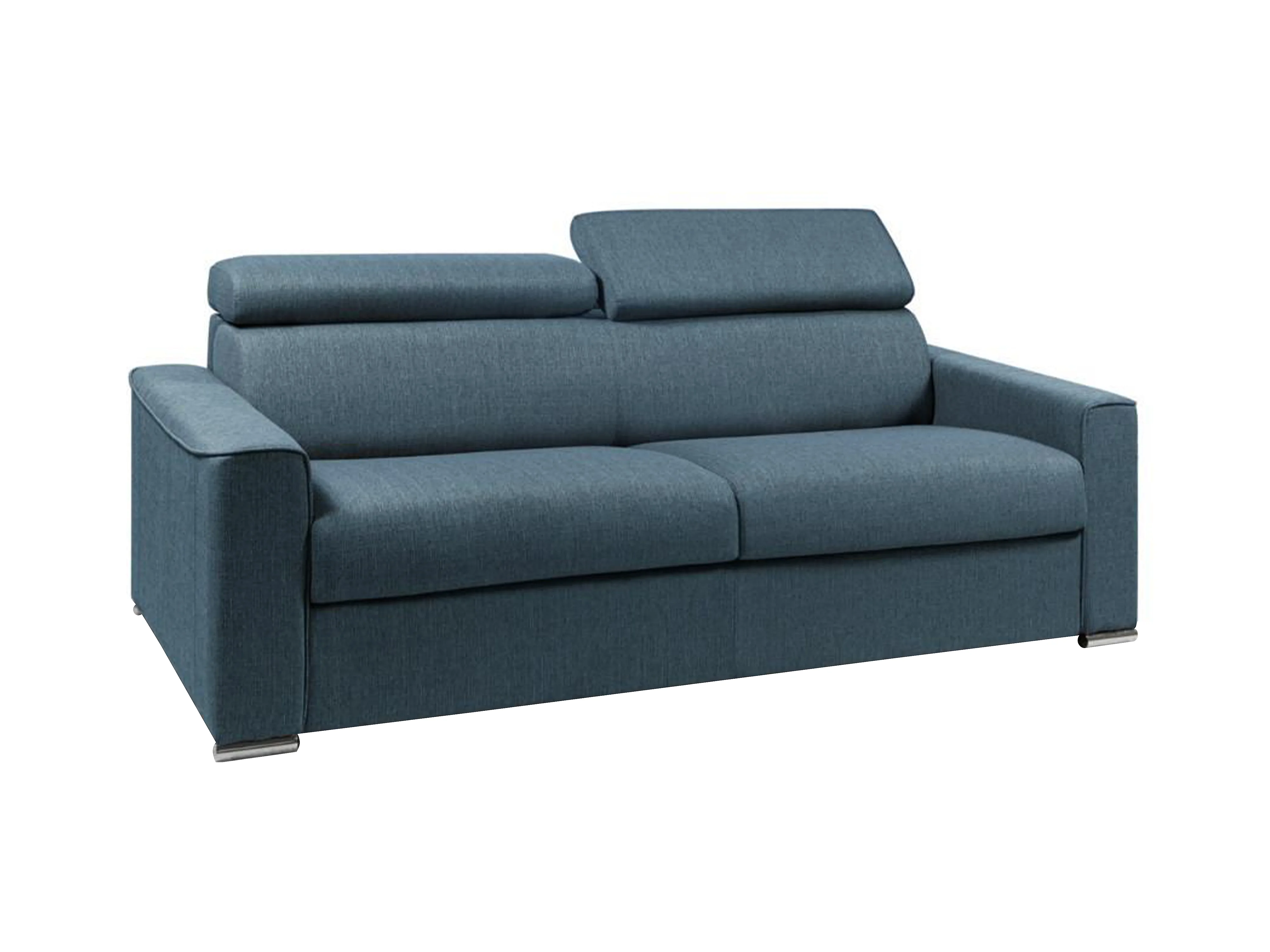 Kanapa rozkładana 4-osobowa VIZIR typu express z tkaniny – kolor niebieski – miejsce do spania z szerokimi listewkami, 160 cm – materac 18 cm