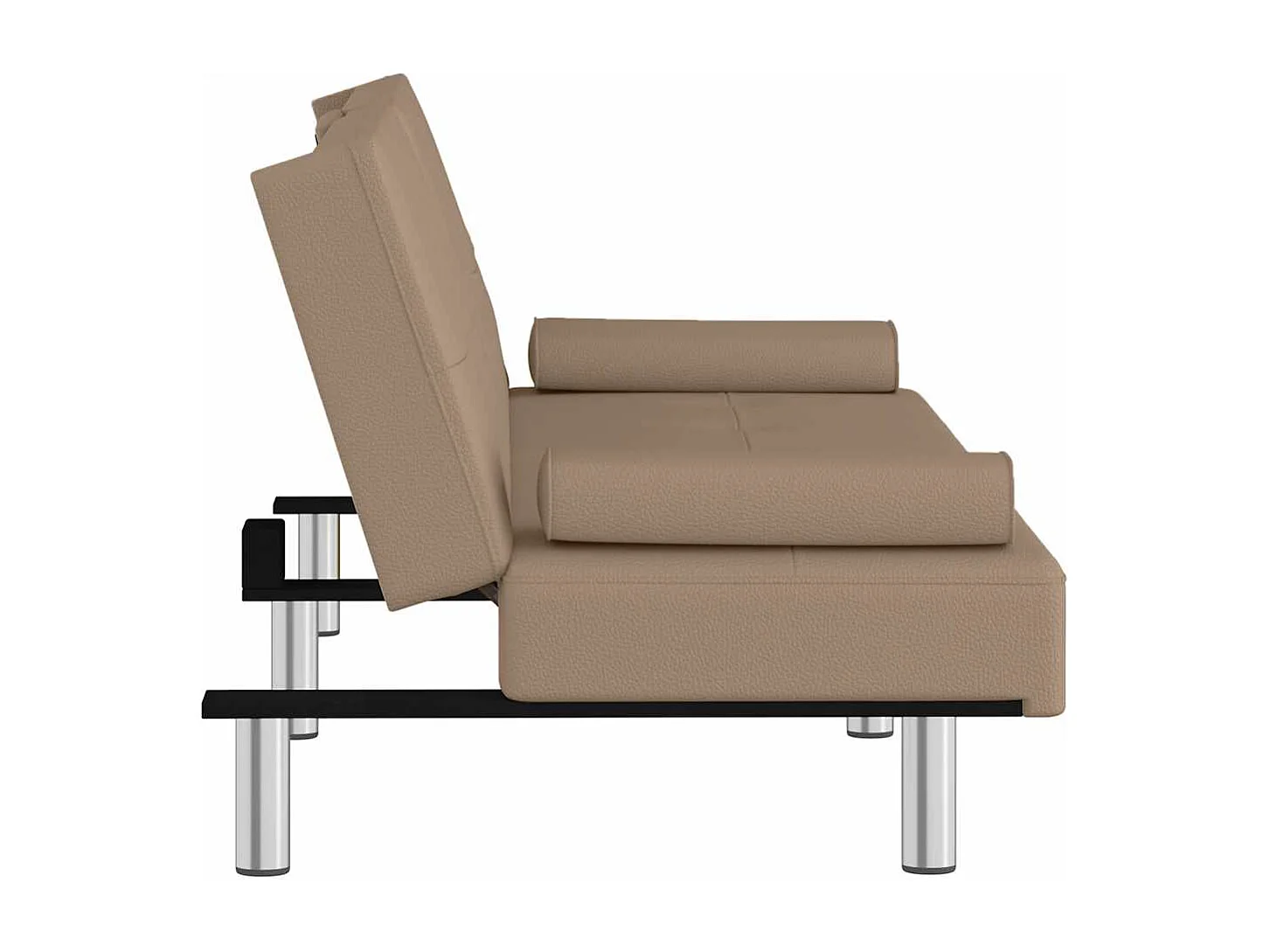 Kanapa rozkładana prosta cappuccino ze skóry ekologicznej z uchwytami na kubki, składanym stolikiem i wbudowanymi portami USB