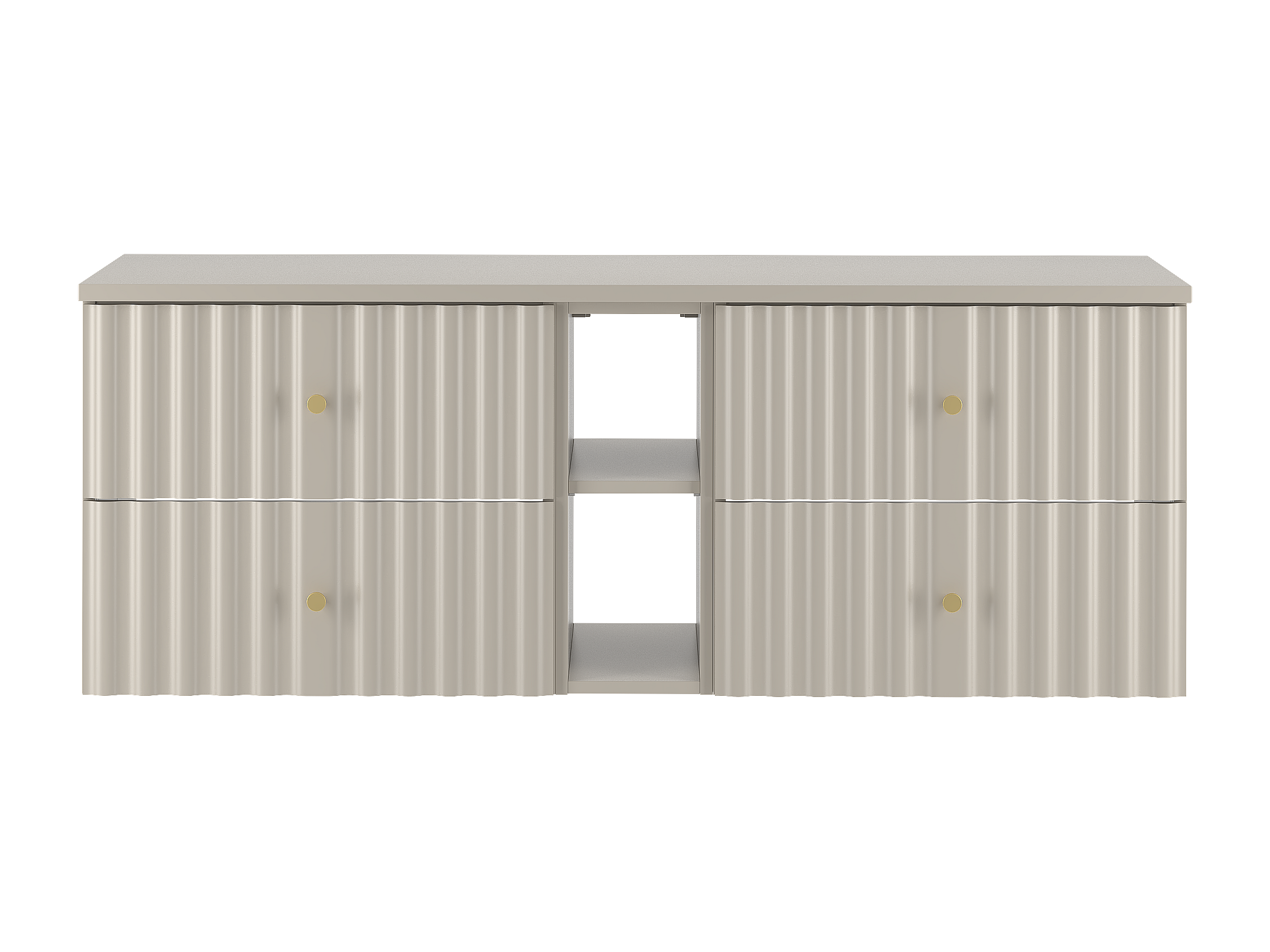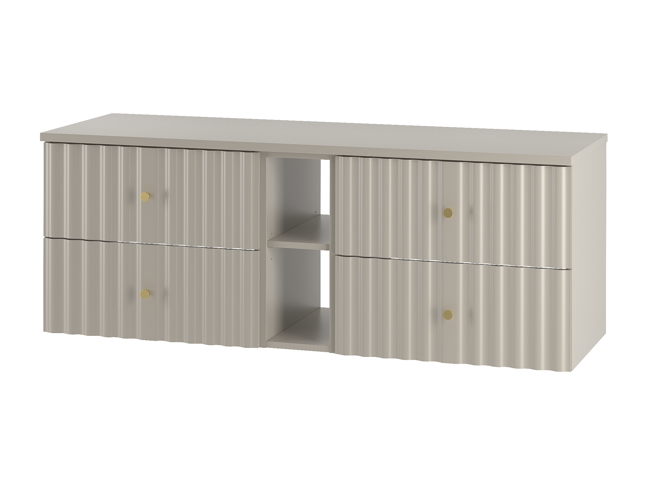Kaszmirowa Zestaw Łazienkowy 140cm Szafka z Blatem i Regałem Ryflowane Fronty Aqua