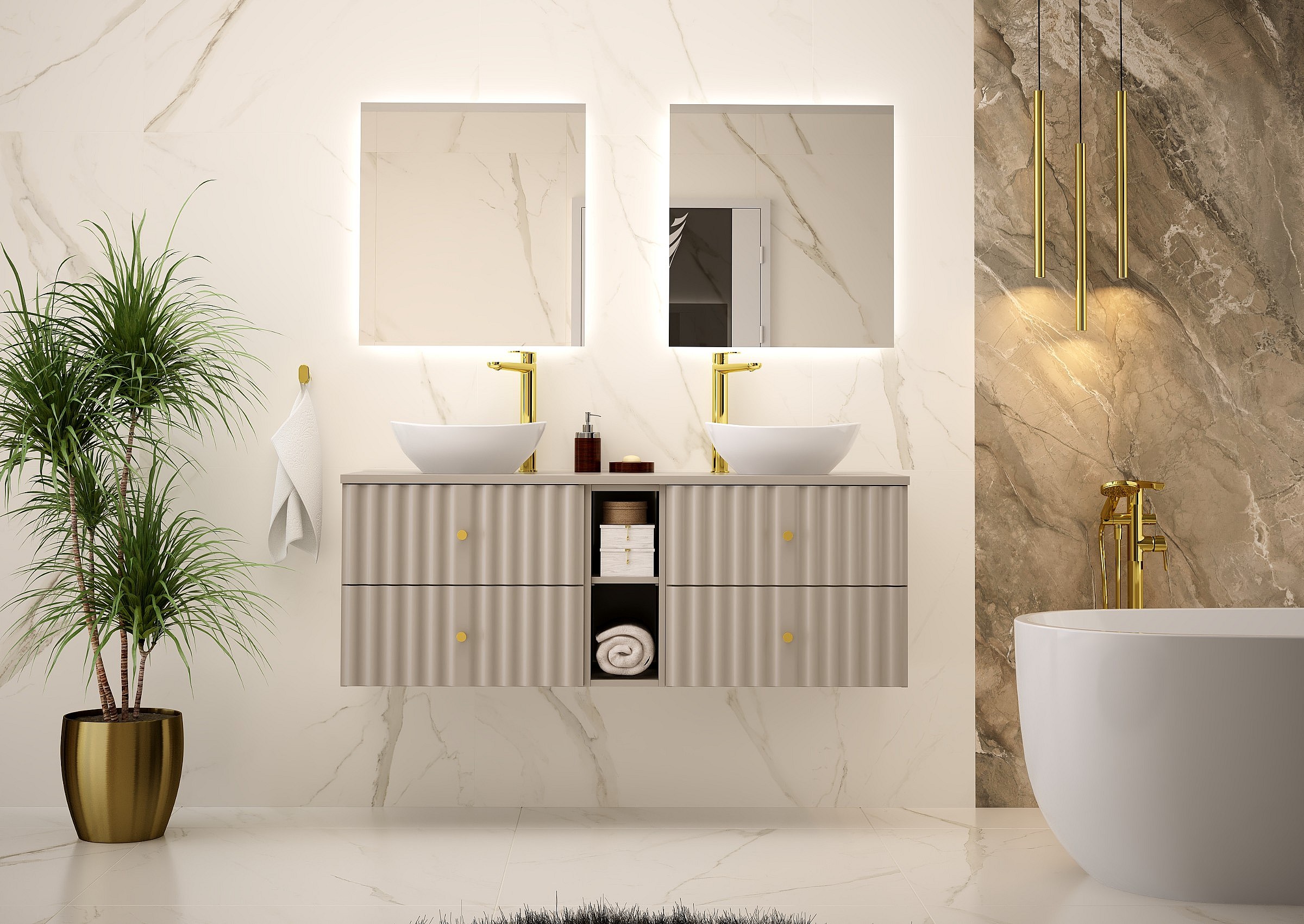 Kaszmirowy Zestaw Łazienkowy 120cm Szafka z Blatem Delica