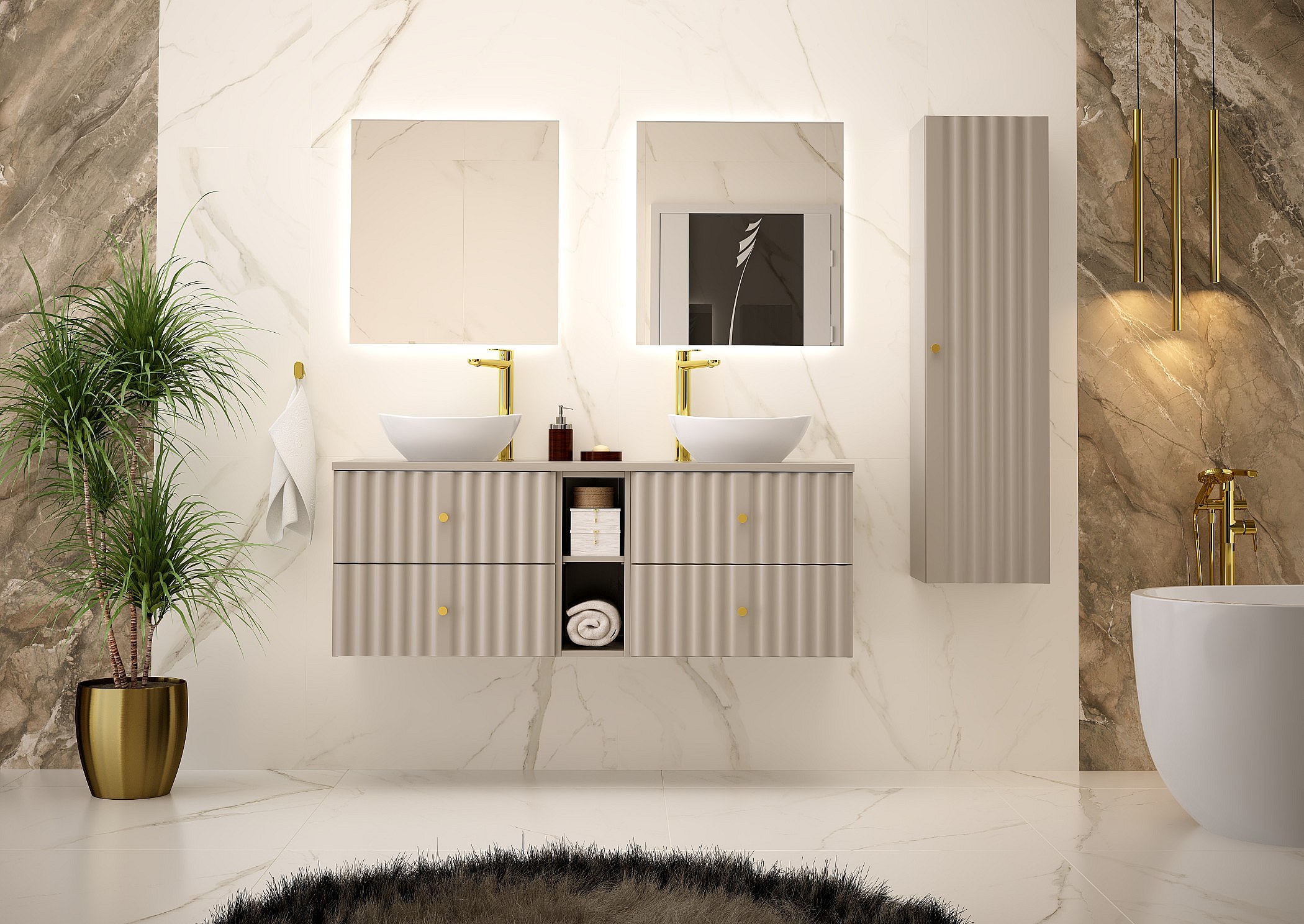 Kaszmirowy Zestaw do Łazienki 140cm Szafka Regał Blat Marco