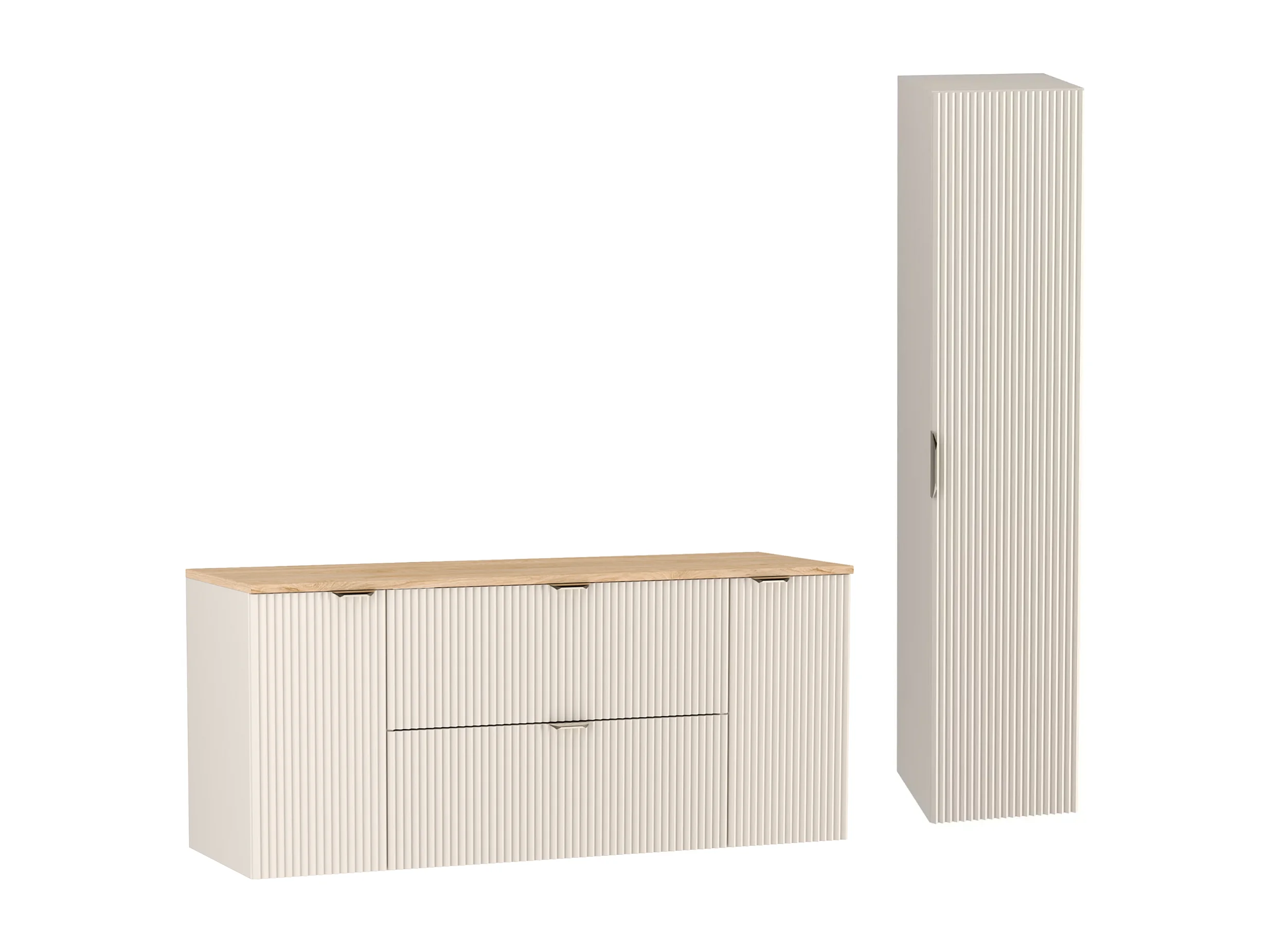 Kaszmirowy Zestaw do Łazienki 140cm Szafka Blat Słupek Ryflowane Fronty