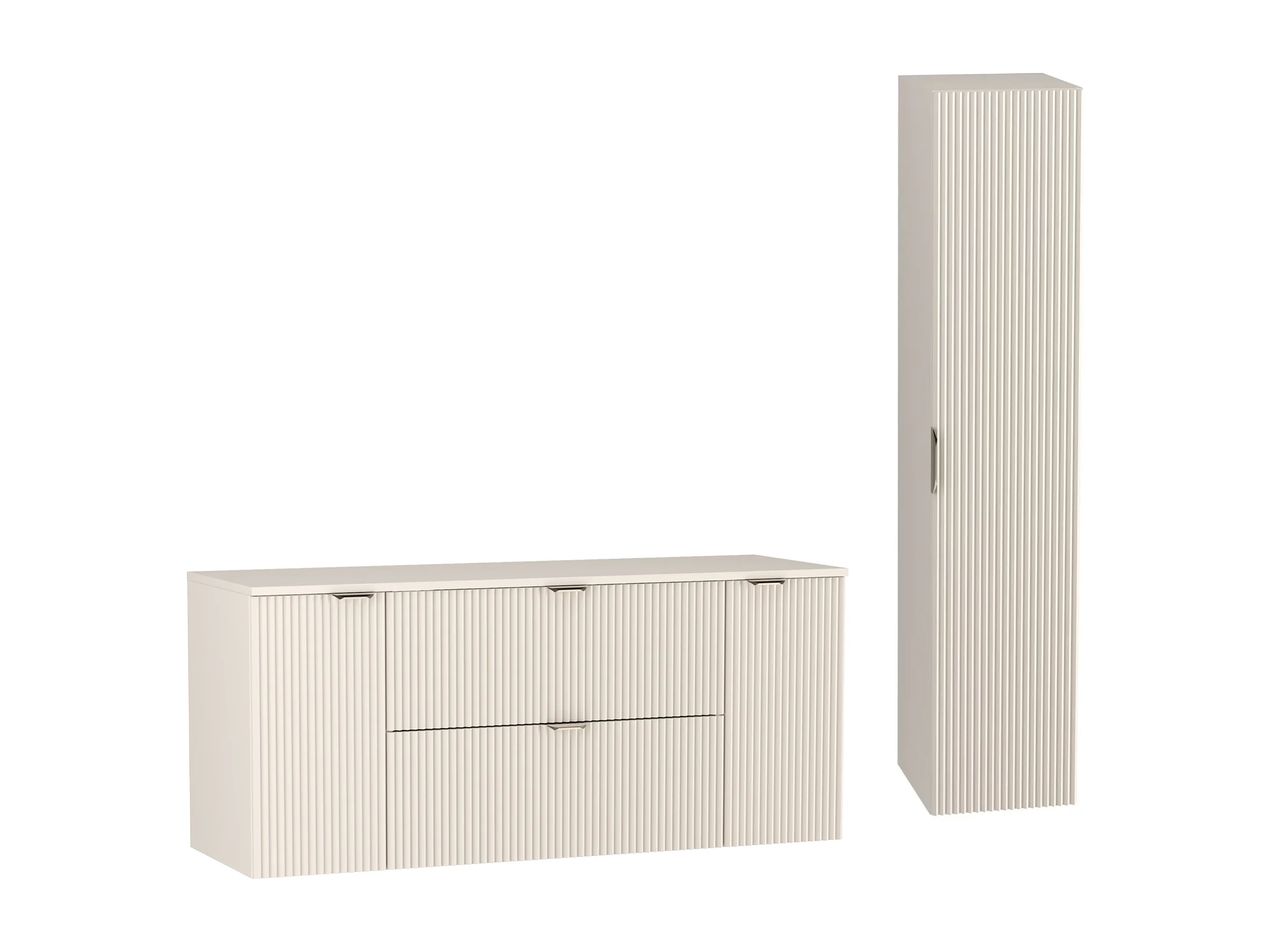 Kaszmirowy Zestaw do Łazienki 140cm Szafka Blat Słupek Ryflowane Fronty