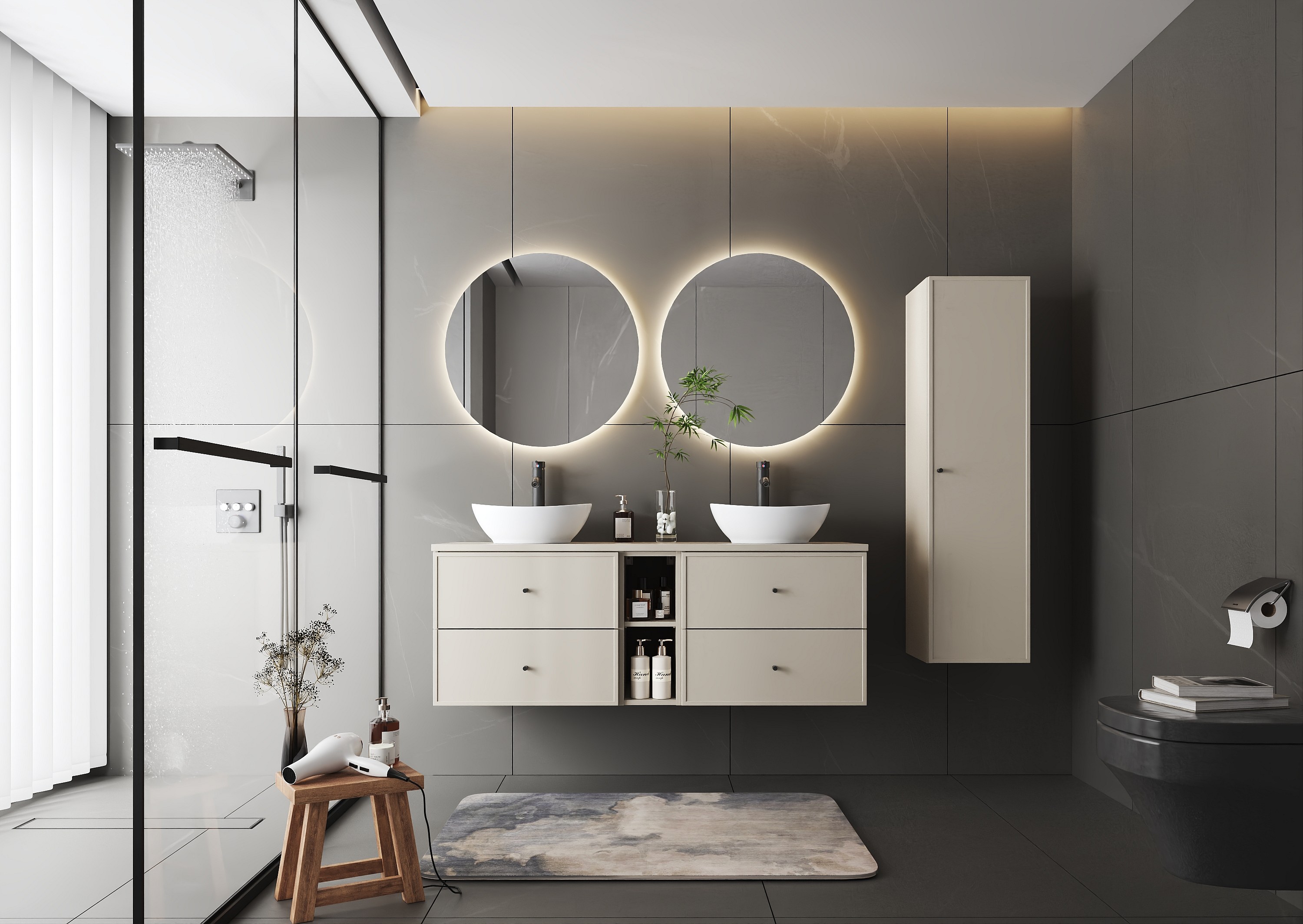 Kaszmirowy Zestaw do Łazienki 140cm Szafka Regał Blat Pile