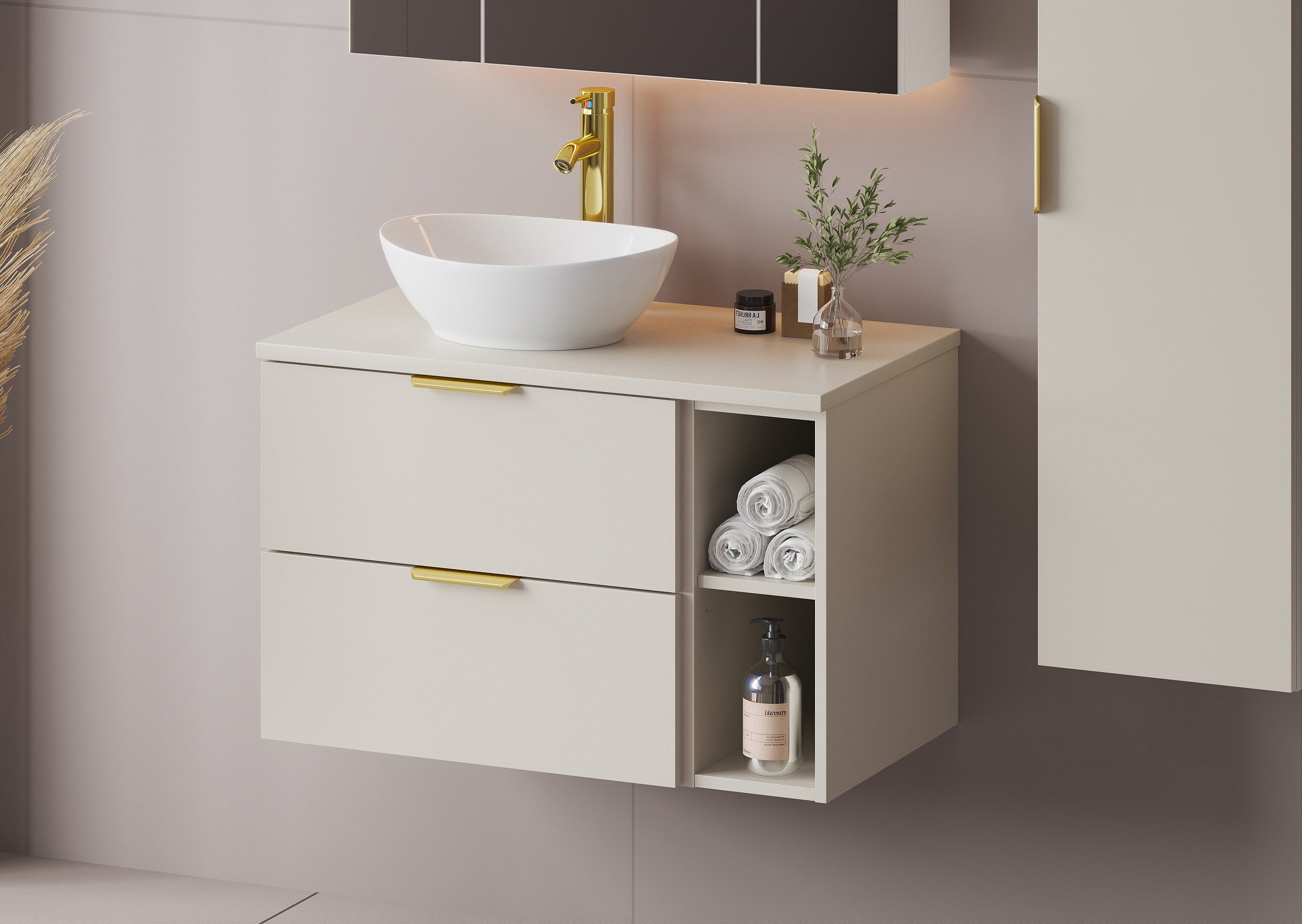 Kaszmirowy Zestaw do Łazienki 80cm Szafka Regał Blat Marco