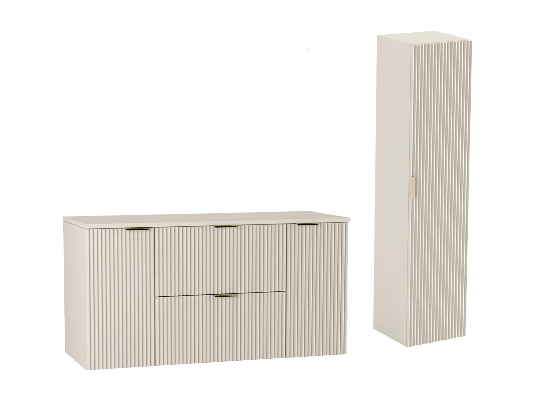 Kaszmirowy Zestaw do Łazienki 140cm Szafka Blat Słupek Ryflowane Fronty