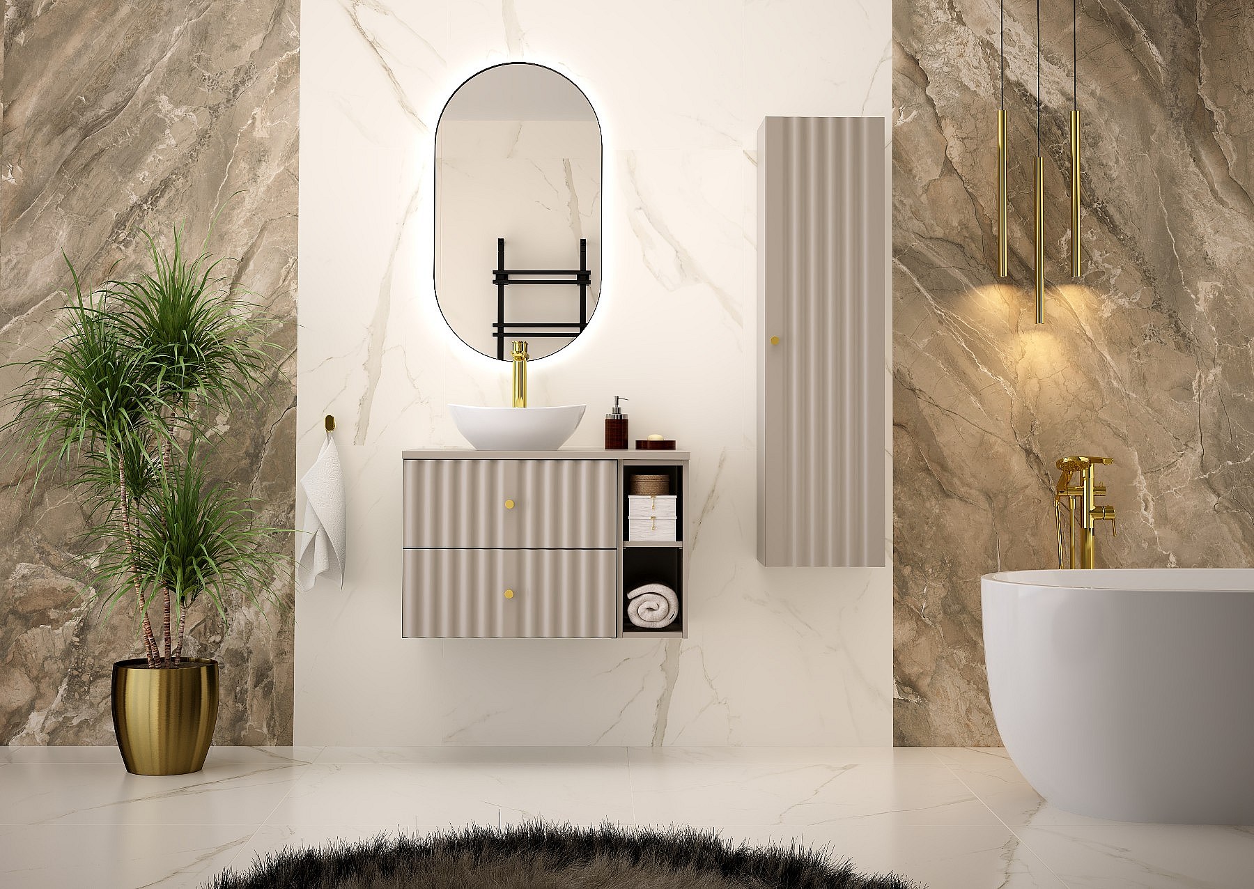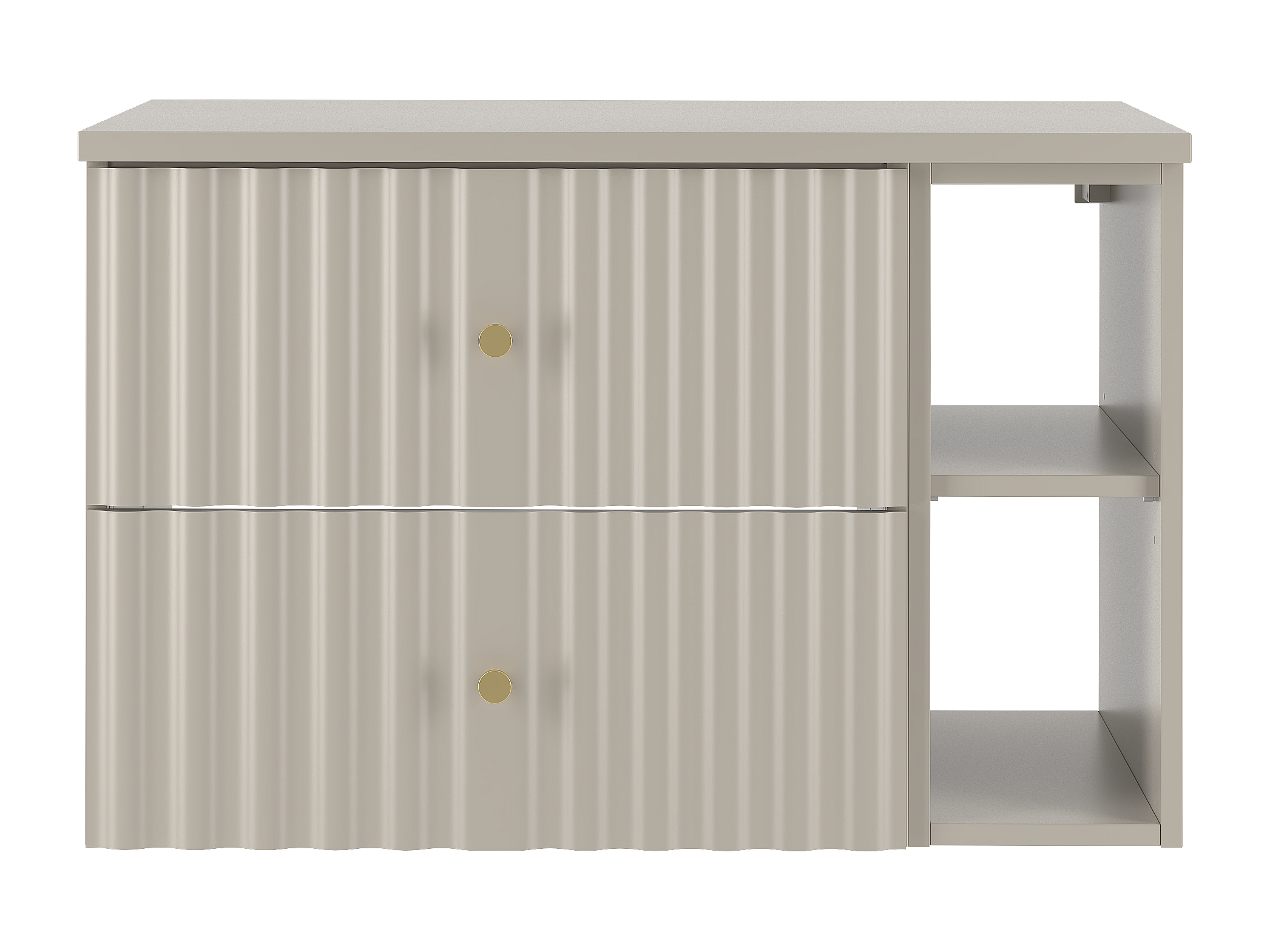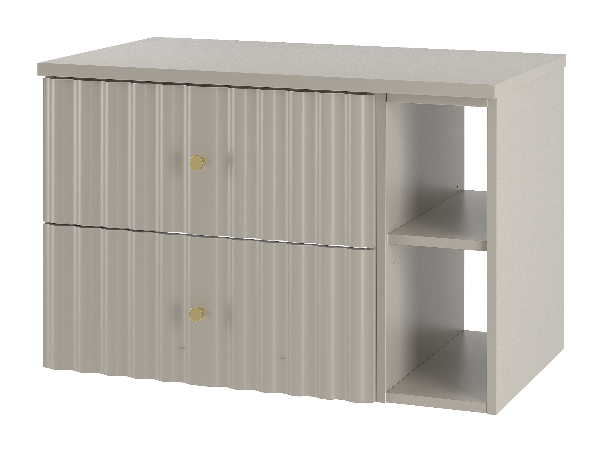 Kaszmirowy Zestaw Łazienkowy 80cm Szafka z Blatem i Regałem Ryflowane Fronty Aqua