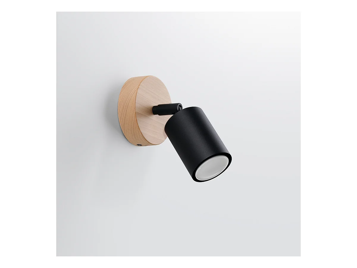 Kinkiety nowoczesny Flare, stal/drewno - 1 źródło światła 4000K - L.16 x H.16 cm - czarny/drewno