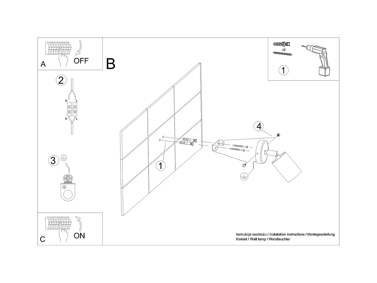 Kinkiety nowoczesny Alvor, stal - 1 źródło światła 3000K - L.8 x H.16 cm - czarny/złoty